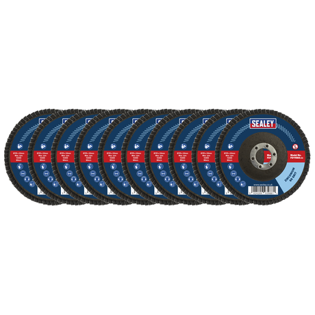 Regular price £10.89inc VATUnit priceinc VAT /UnavailableSealey Assorted Grit Flap Discs Zirconium Ø115mm Ø22mm Bore - Pack of 10