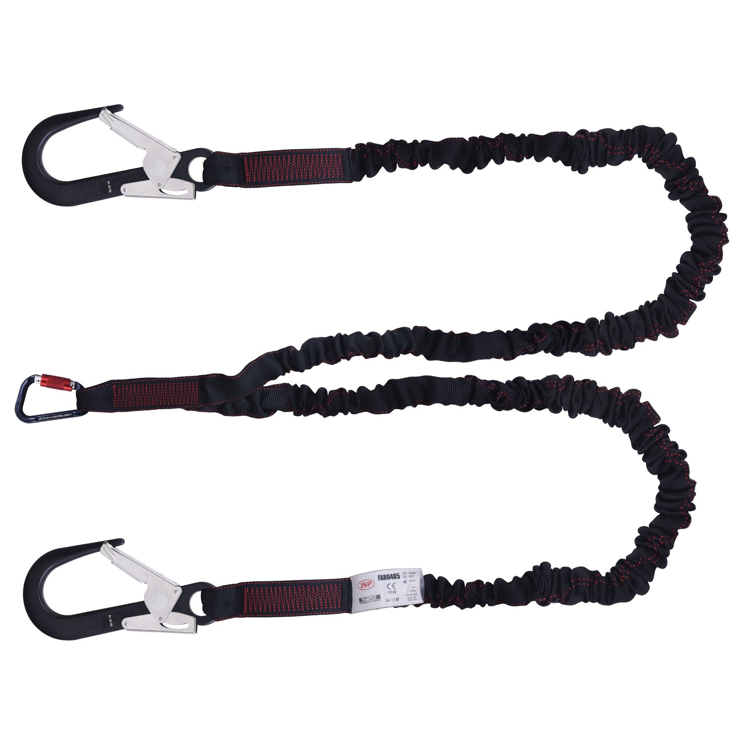 • Elasticated twin lanyard with incorporated shock absorbing webbing