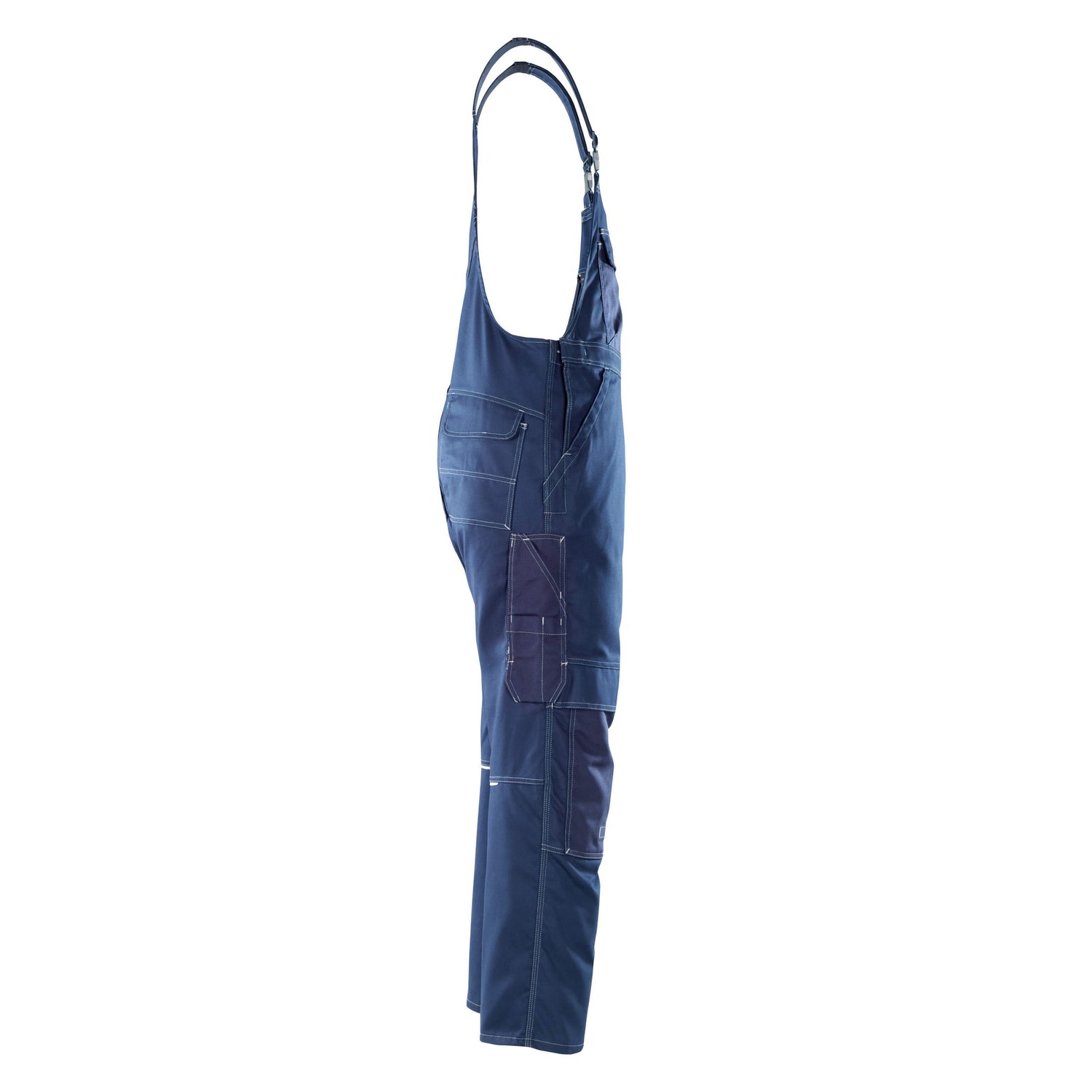 Properties: Triple stitched seams at leg and crotch. Adjustable straps in short, strong elastic with plastic buckles. CORDURA® fabric large bib pocket with pen pocket and flap with hidden press studs. Inner pocket with hook and loop band fastening. Adjustable waist. Ergonomically formed trouser leg. Front pockets. Fly with zip. Back pockets with reinforcement, flap and hook and loop band fastening. Adjustable hammer loop. Reinforced thigh pocket and flap with hook and loop band fastening. Thigh phone pocket with flap and adjustable hook and loop band fastening. CORDURA® fabric reinforced ruler pocket. Pen pocket in CORDURA® fabric. Adjustable kneepad pockets in very durable CORDURA® (1000 D) with flap and top access. Contrast stitching. Reflectors.