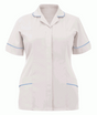 - Ladies classic healthcare tunic with short sleeves and a rounded collar with