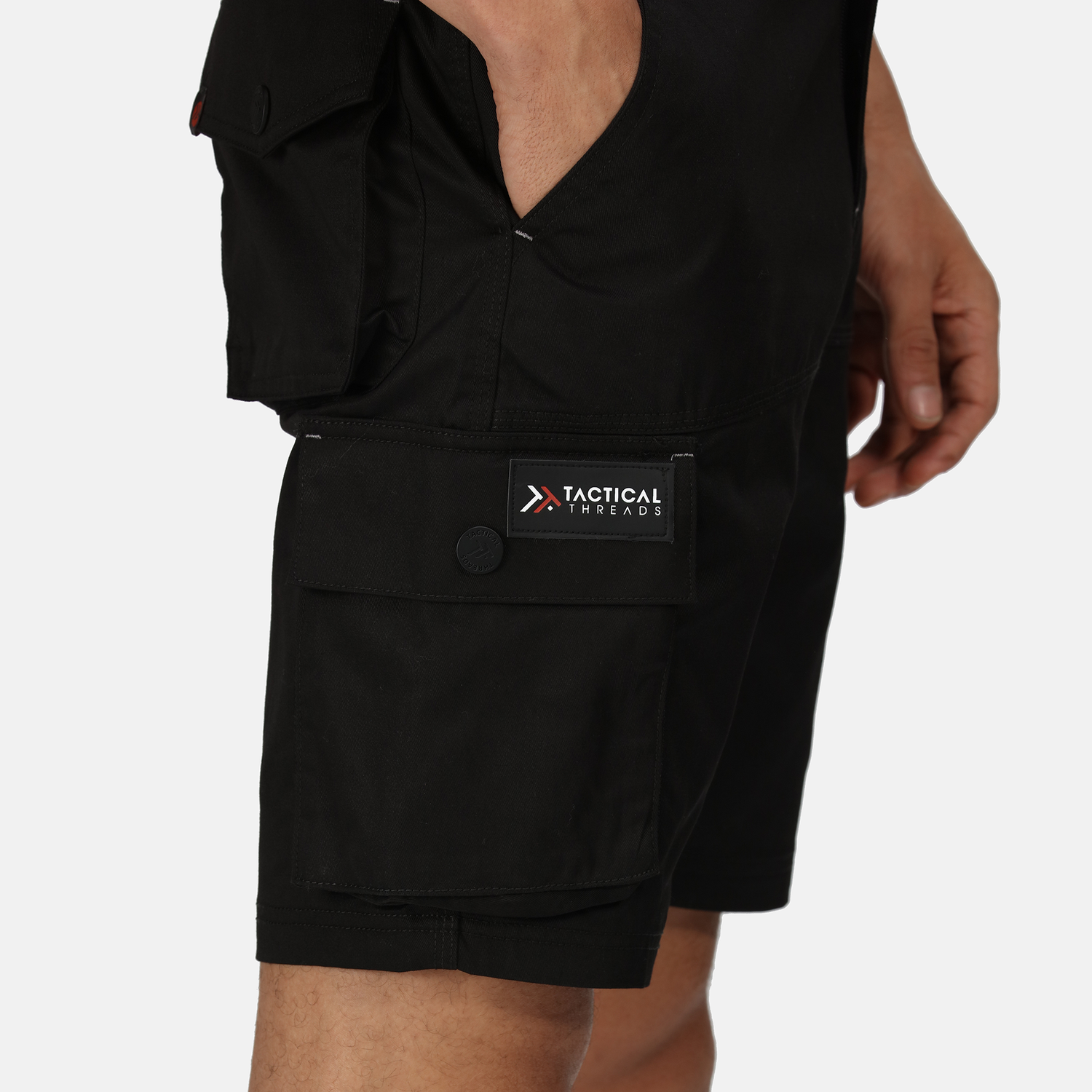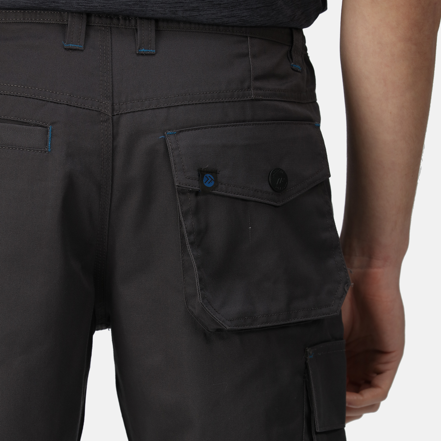 - 2 Front pockets 1 side cargo pocket button fasten, 2 rear pockets