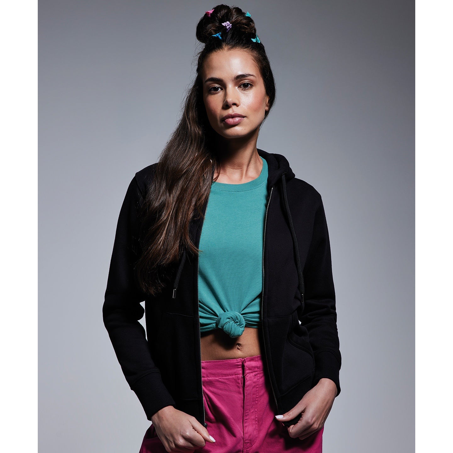 At Anthem we pride ourselves and our styles on three main values: ethically sourced, high quality fabrics and ideal for the imprint market. All these characteristic can been found in our women’s Anthem full-zip hoodie. This incredibly soft-feel style is created with organic cotton, with the addition of recycled polyester in our marl colours. Twin-needle detailing throughout with high quality finishes and a concealed zip make this style perfect for print.