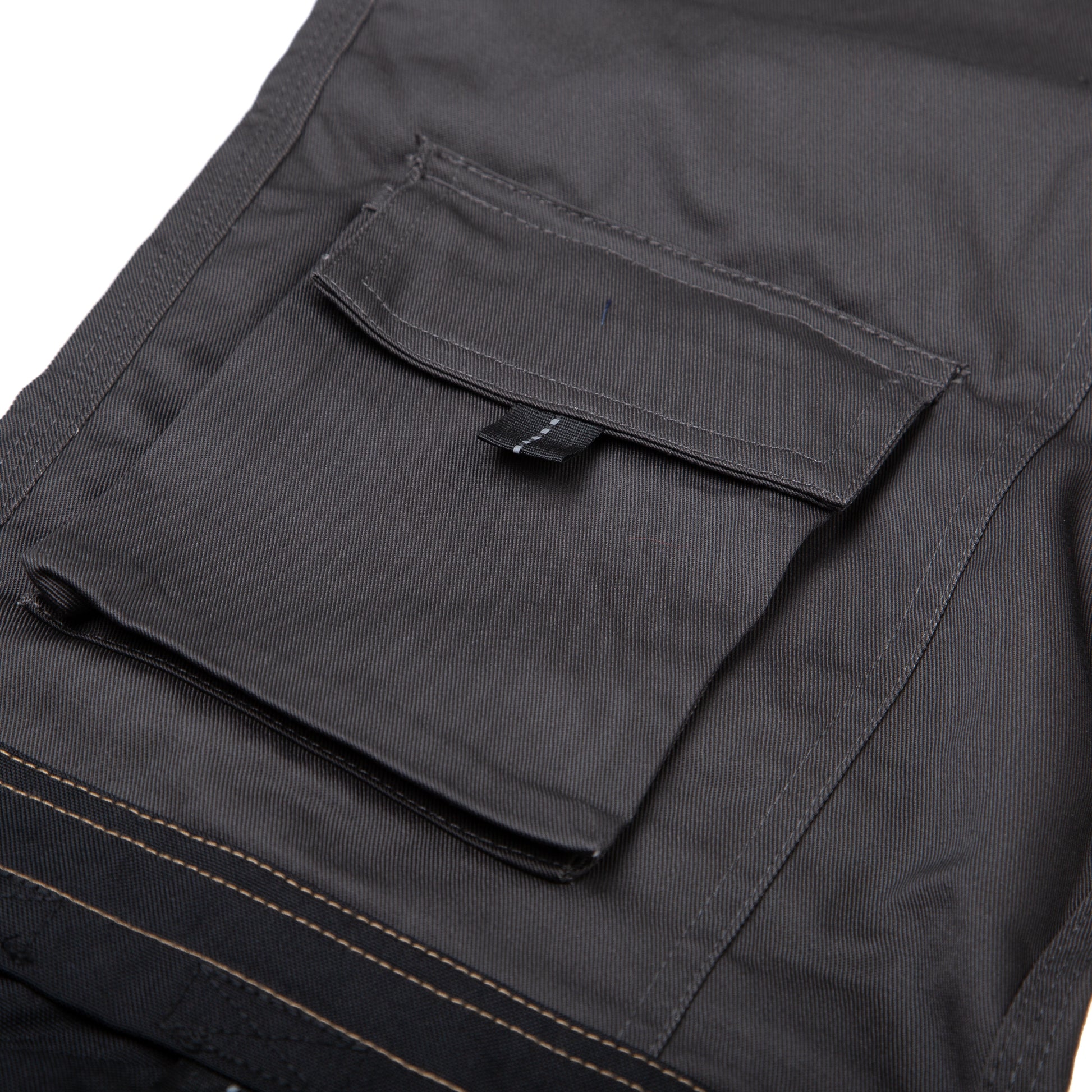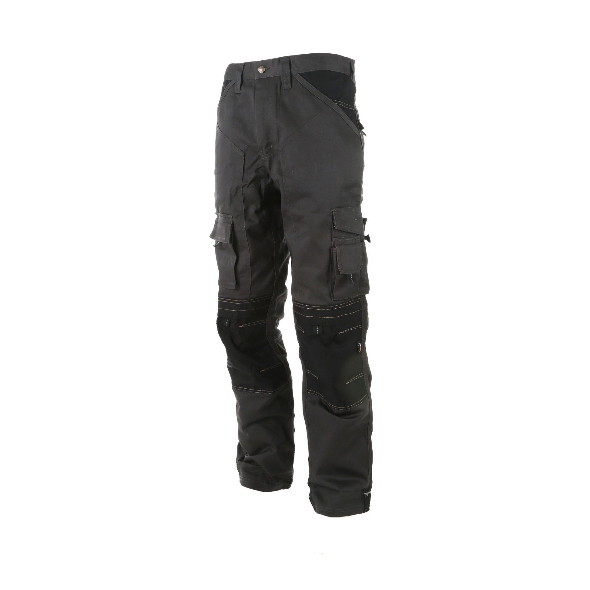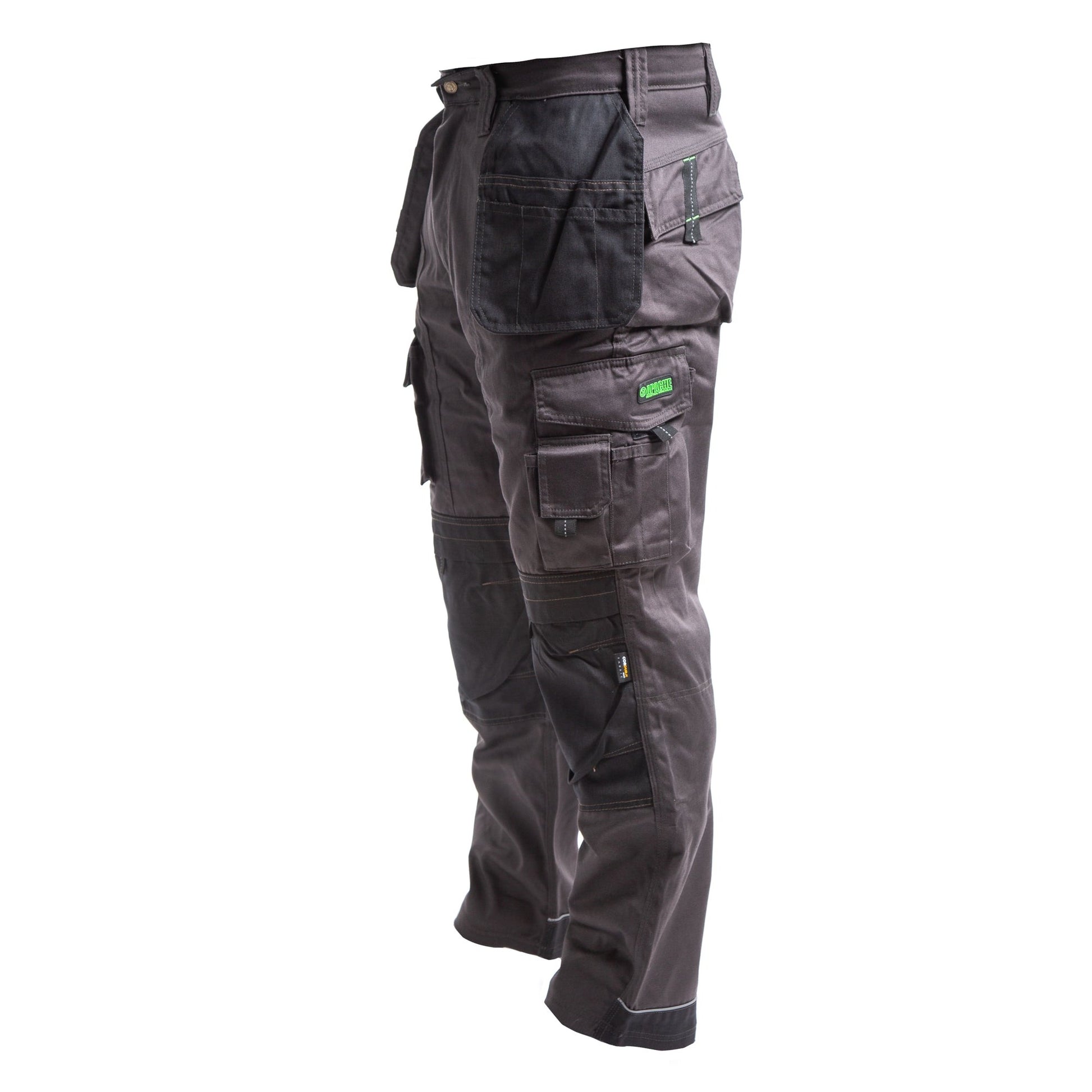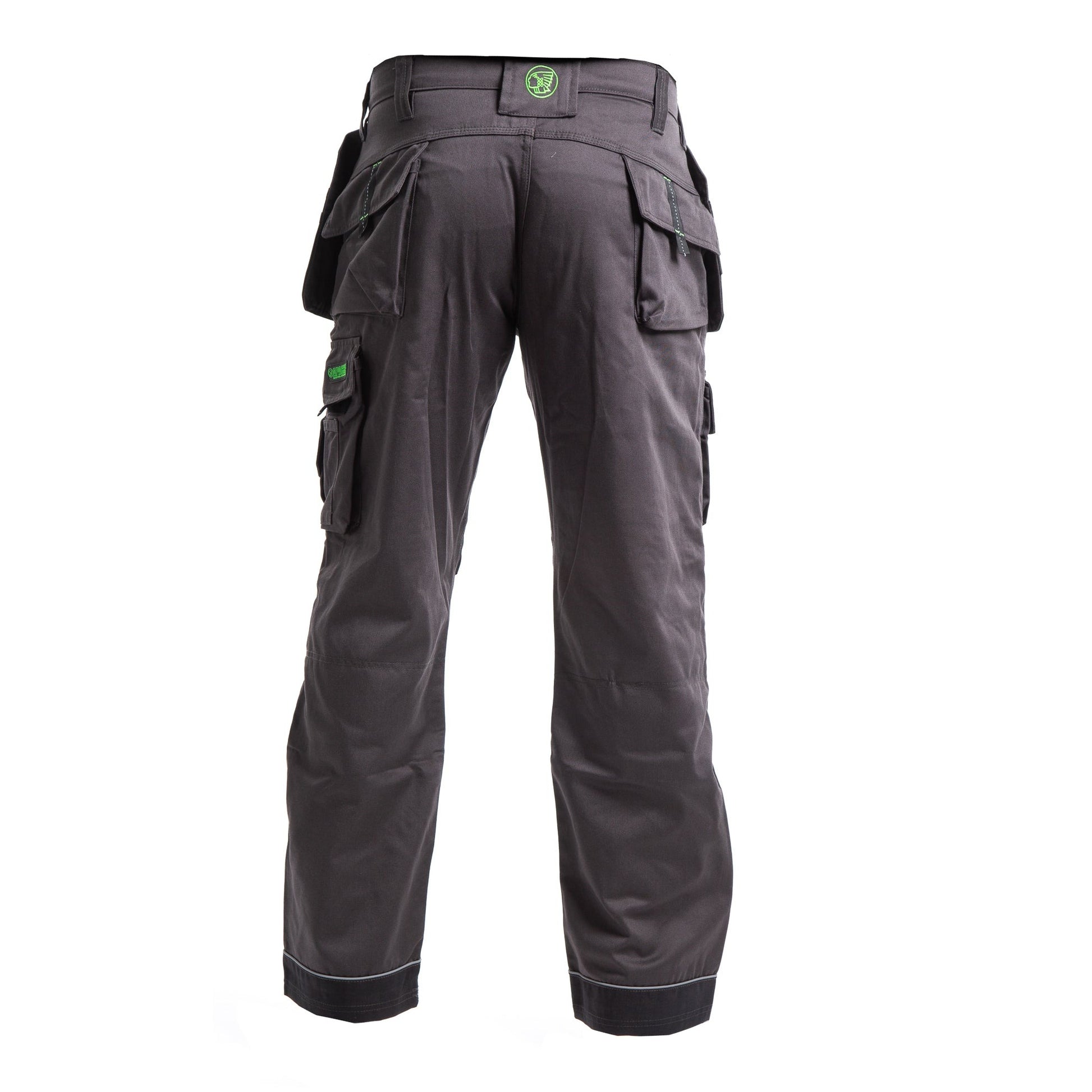 A functional work trouser featuring Cordura holster pockets and knee pad pockets. Cordura reinforced hem and reflective piping. Side cargo pocket and large phone pocket to oppostie leg. Triple stitched in key areas. Low rise comfort waist. Tunnel belt loop and YKK zip. A good all round tradesman trouser.