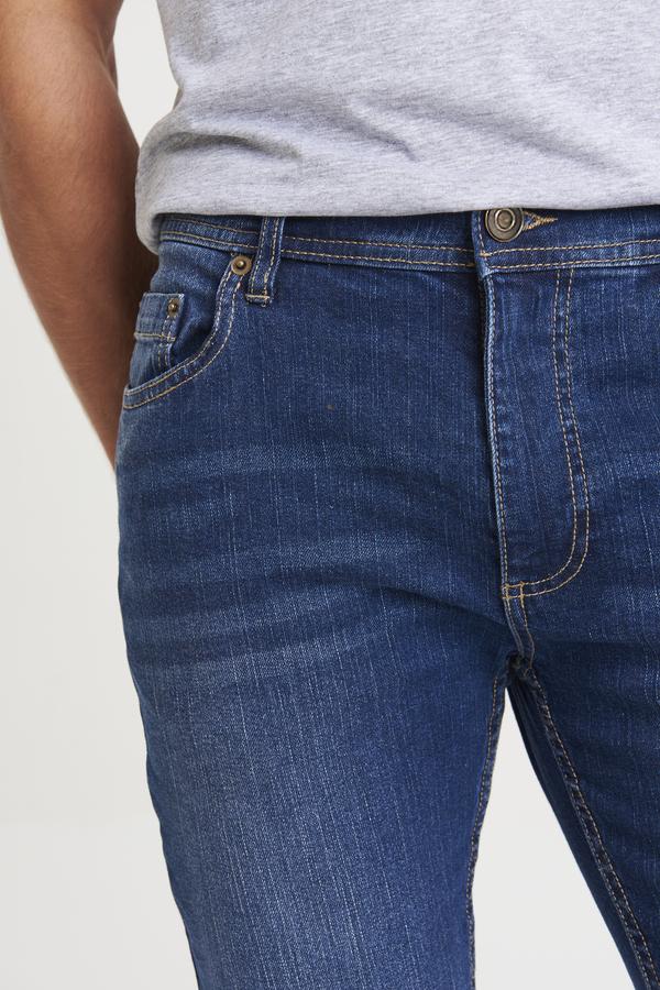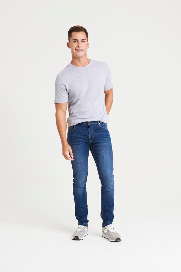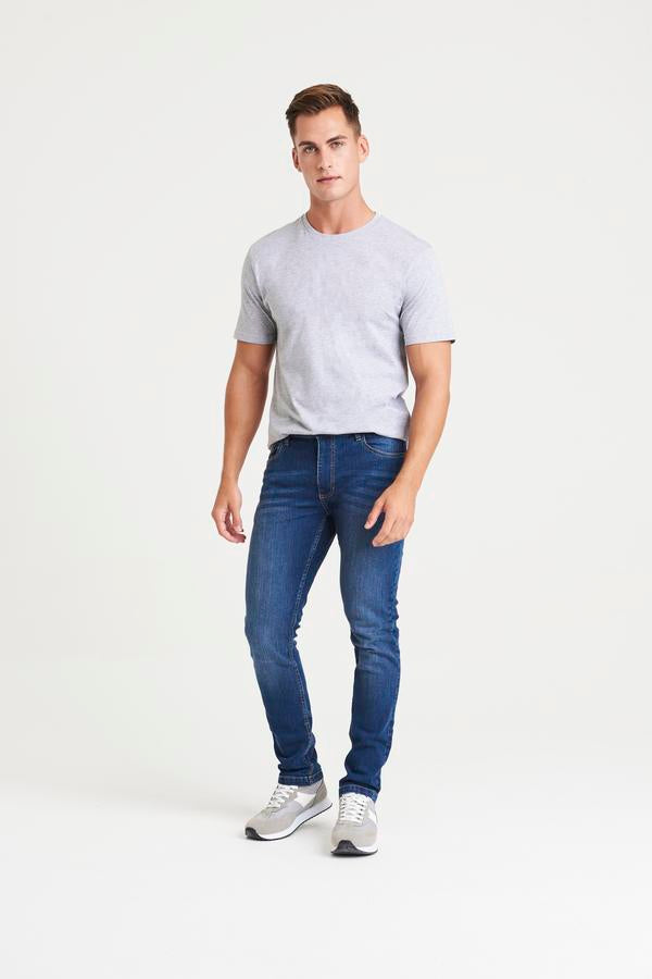 Slim fit. Stretch denim. 5 pocket styling. Light blasting & whiskering (blue washes only). Self-fabric belt loops. Shank button and YKK zip fly fastening. Metal rivet detail at pocket corners. Twin needle stitching detail. SEDEX certified. Vegan certified. BSCI certified. Oeko-Tex certified.