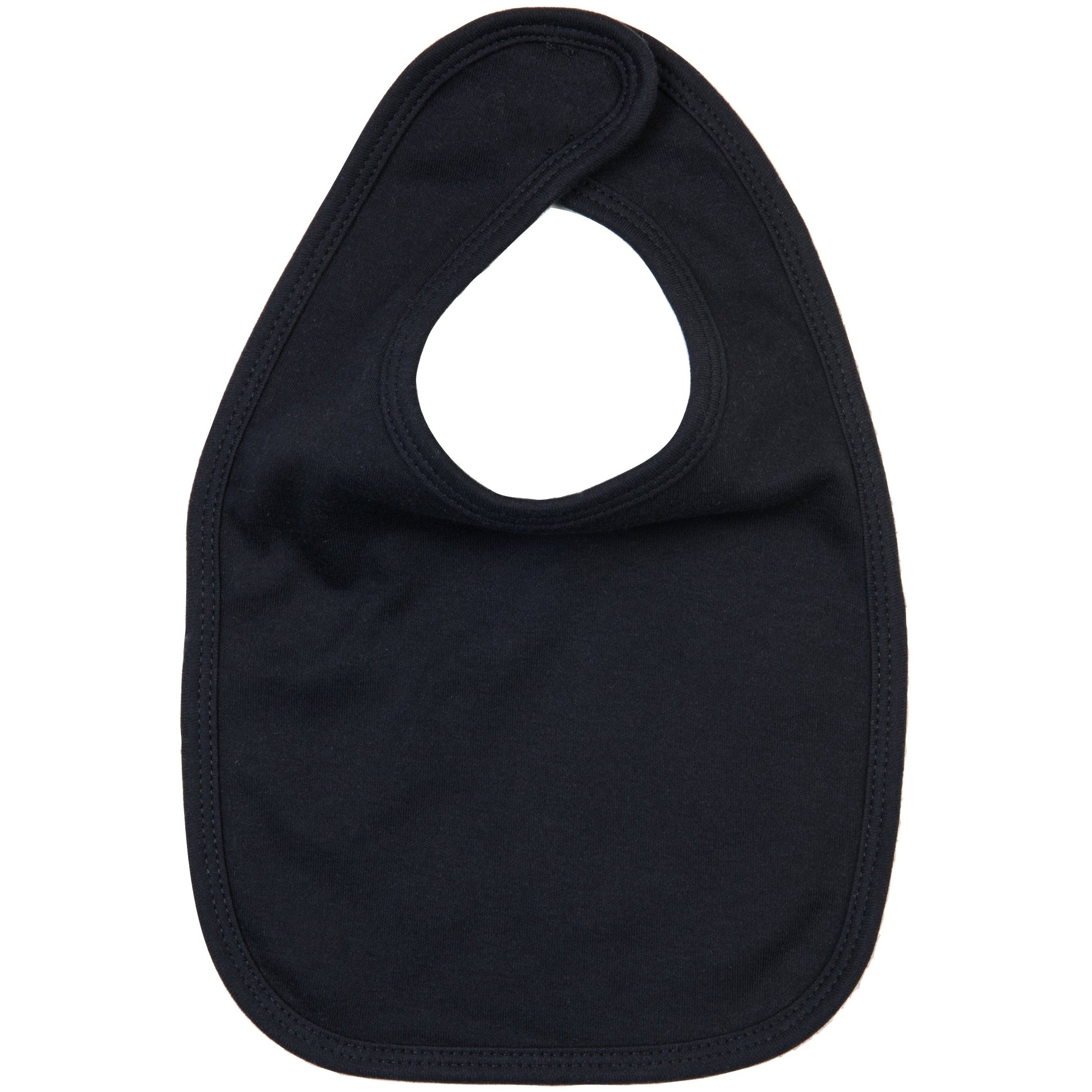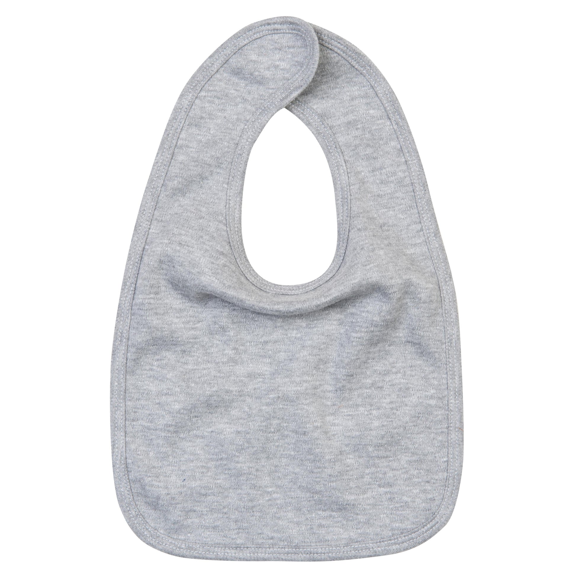 Double layer, super soft baby bib with hook and loop fastening at back neck, and binding for extra shape retention.