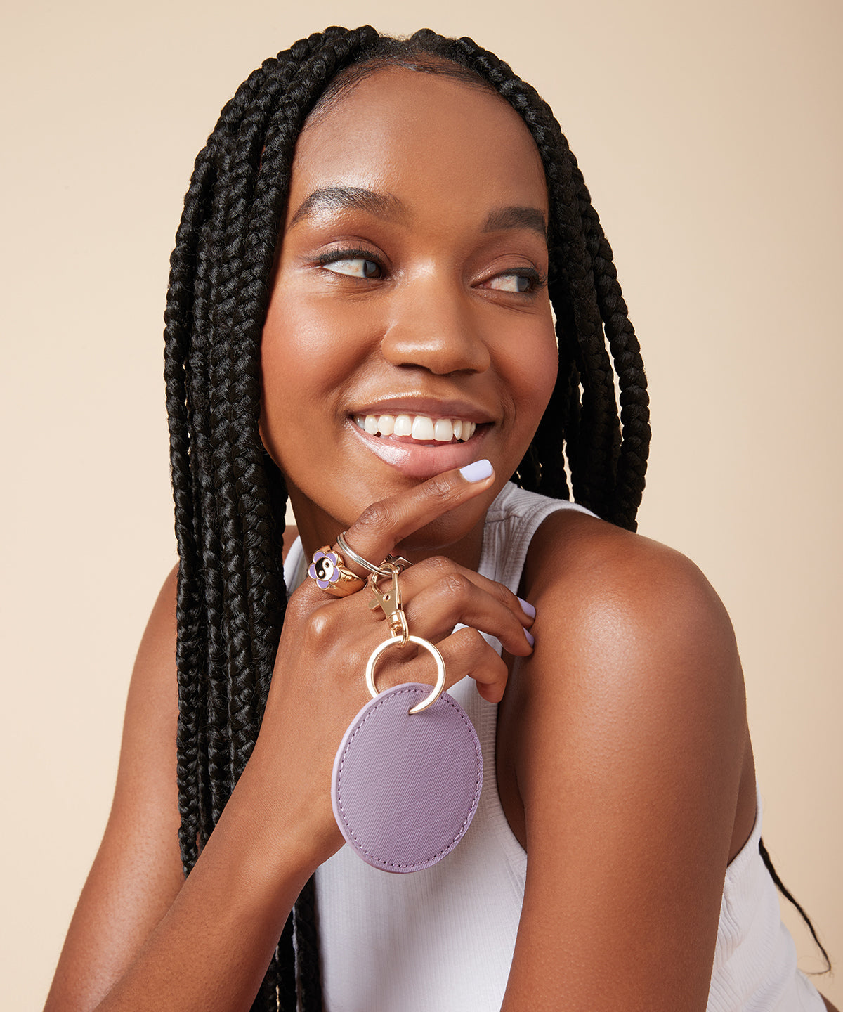 - High-shine metal key clip