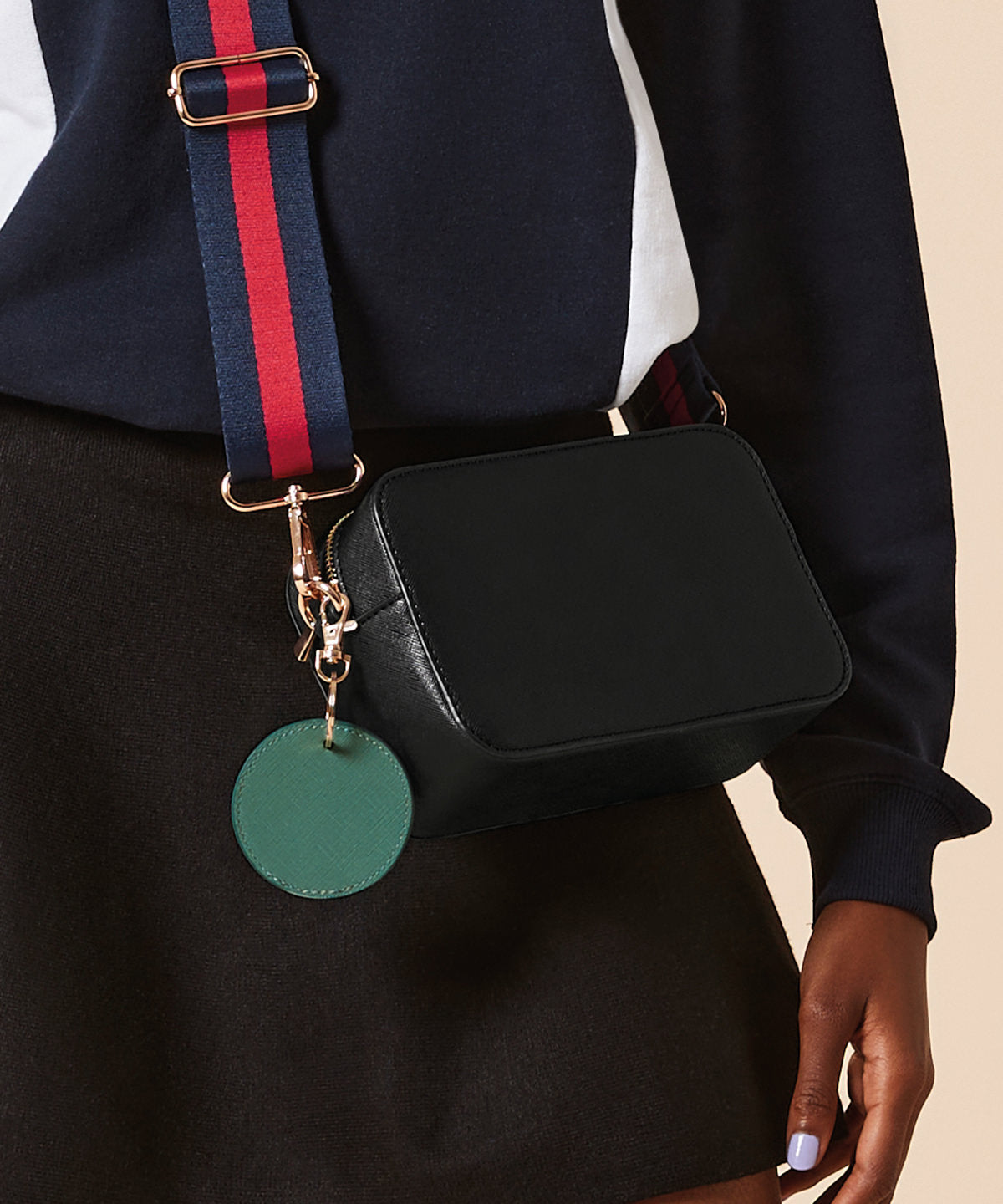 Saffiano fine grain. High-shine metal key clip. Can be used as a keyring or bag charm. Designed for decoration. BSCI certified. Reach certified.