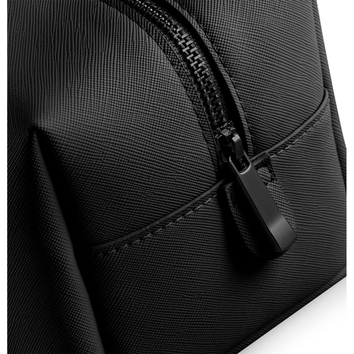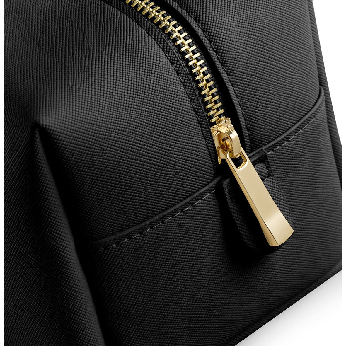100% Leather-look PU. Saffiano fine grain. Multipurpose use. Zipped main compartment. Soft-touch lining. High-shine gold metal zip. TearAway label for easy rebranding.