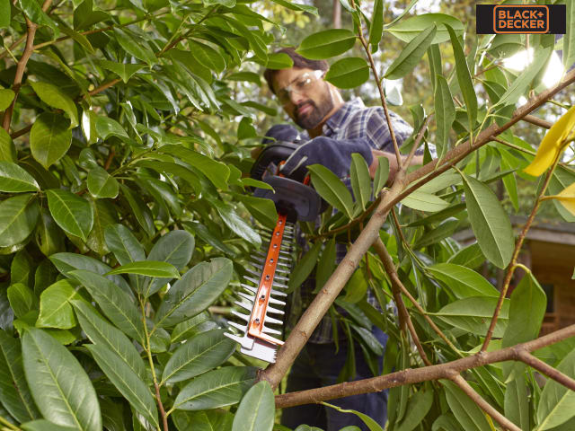 The BLACK + DECKER BEHTS401 Hedge Strimmer® is equipped with a 500W motor and dual action steel blades.