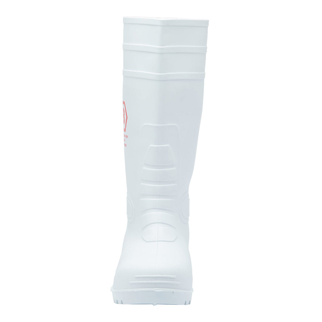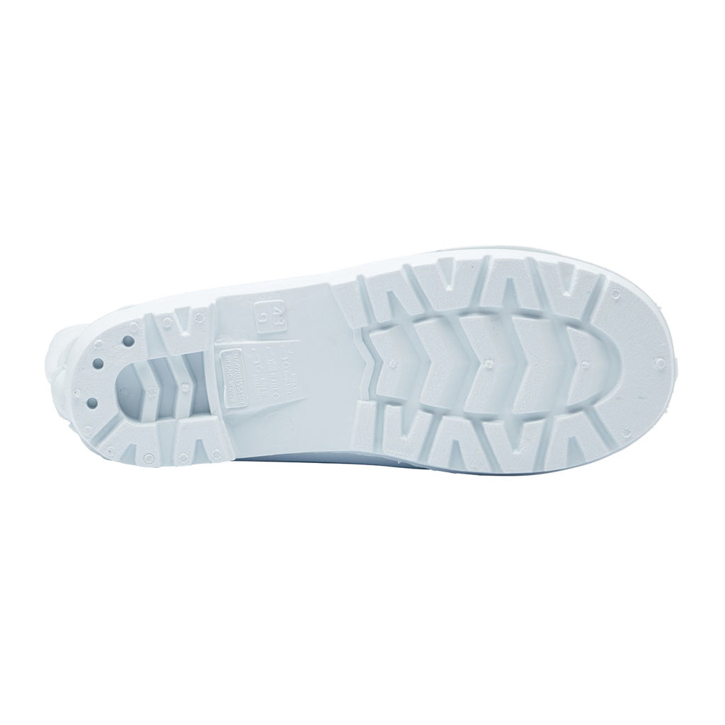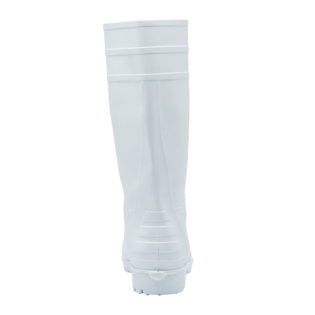 Ideal for indoor cleanroom environments such as food preparation, medical, and pharmaceutical settings where there is a risk of slipping on wet or dry tiled surfaces, Blackrock's Hygiene Safety Wellington features waterproof PVC nitrile construction with a washable nylon lining. It includes a steel toe cap with a heavy-duty bump cap for added durability and a kick spur on the heel for easy removal. The sole is anti-slip, anti-static, and resistant to fuel oil, providing excellent protection and functionality in demanding hygiene-focused workplaces.