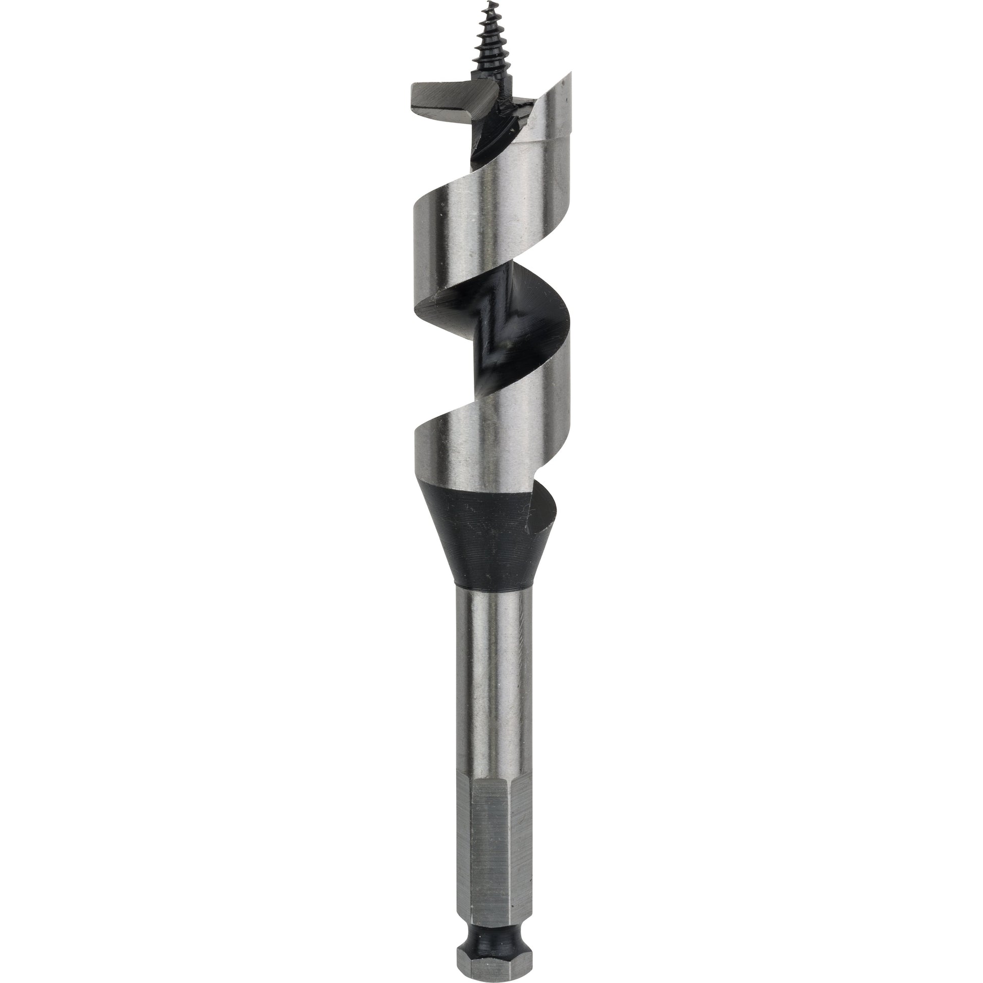 This drill bit has a hexagonal shank system and works with all drill drivers with a 13-mm chuck. The Auger Bit is ideal for fast drilling-accuracy when producing through-holes, pre-drilling for rafter nails and drilling deep dowel holes in wood. The heavy-duty self-feeding tip pulls the bit through completely, which allows for quick and effortless precision-drilling. Straight holes and a high chip removal rate and increased speed are made possible by the bit's optimised low-friction flute geometry with a solid centre. Its optimised scoring spur and precision-ground main cutting edge produce accurate holes. It is ideal for use in the ancillary building trades, for carpenters and roofers, and is suitable for soft and hard wood