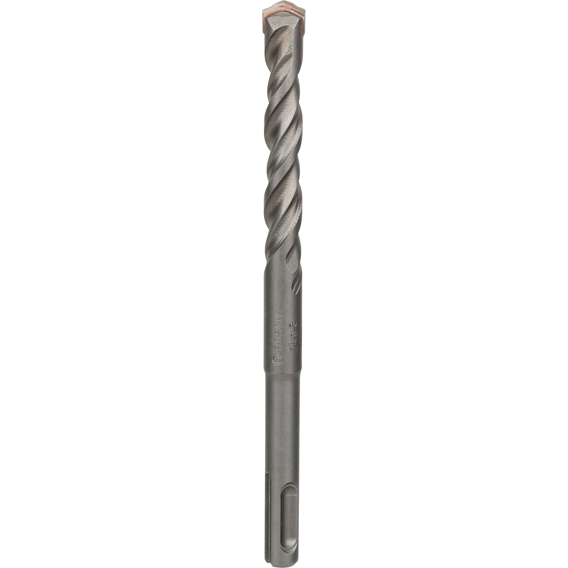 The SDS plus-3 Drill Bit offers durability when drilling in concrete. To prevent heat development, the 4-flute dura design provides effective dust removal for increased endurance. It is made of high-alloy steel, which is produced with an optimised hardening technology to withstand wear. For additional resistance, indented cutting edges are made from an ideal Bosch-controlled carbide blend. As proof of quality, the drill bit bears the test mark of the PGM Masonry Drill Bit Association Board, guaranteeing compliance with tight tolerances, exact drilling and the firm hold of fixings. The bit is intended for work on concrete and masonry and is to be used with rotary hammers with SDS plus holders.