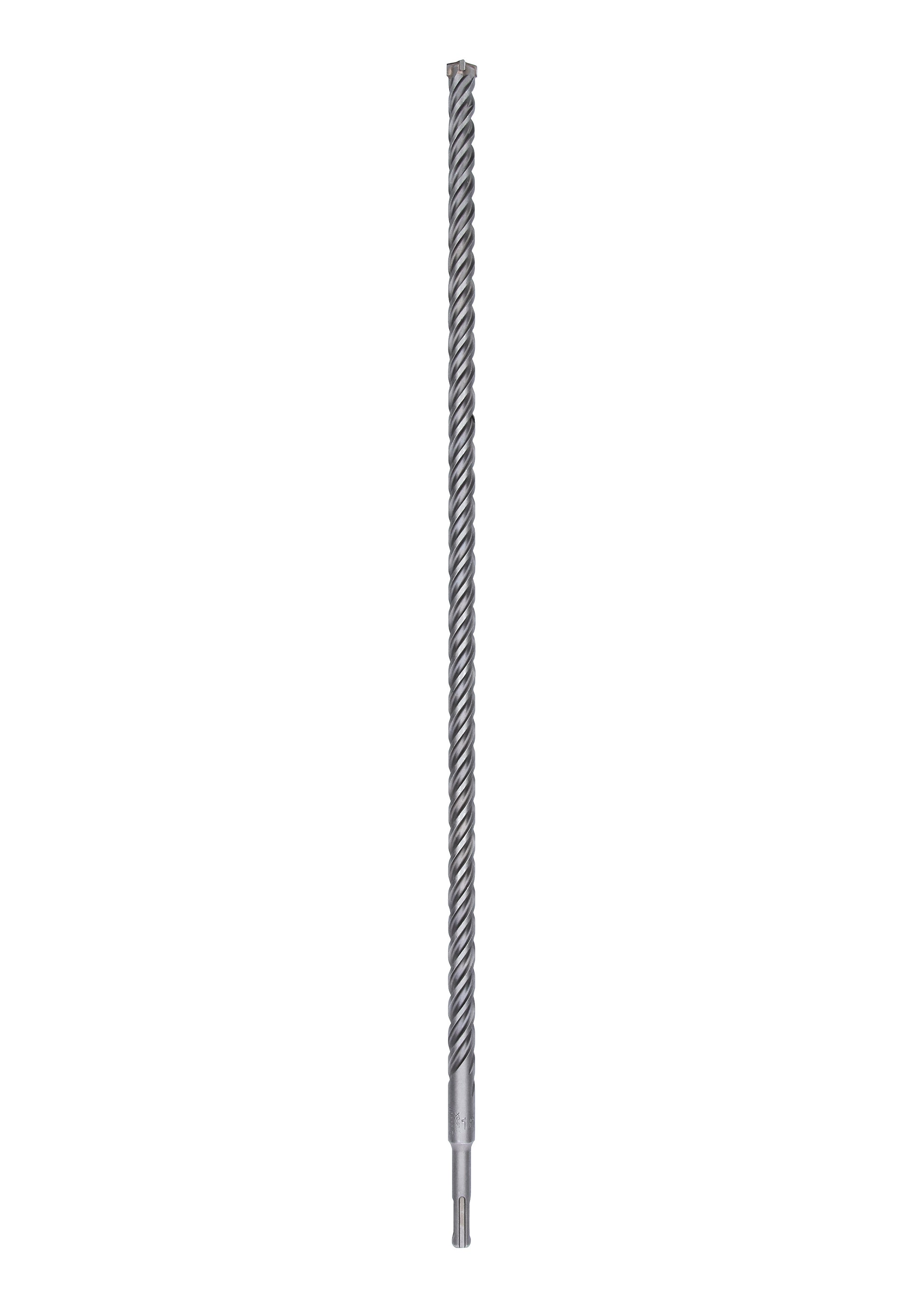 The SDS plus-5X Drill Bit offers highly efficient drilling in reinforced concrete. The geometrical form of the 4-cutter head prevents jamming and breakage for optimal results. The turn-angle head and the large and short dust removal channels within the 4-flute design provide fast dust removal so the bit can slice through concrete and rebar quickly with reduced wear. For efficient work and exact hole diameters, the centring tip guides drilling from the start, to prevent wandering, which can falsify the hole diameter. The bit is intended for use on masonry, concrete and reinforced concrete. As proof of quality, the drill bit bears the test mark of the PGM Masonry Drill Bit Association Board, guaranteeing compliance with tight tolerances, exact drilling and the firm hold of fixings. It is compatible with rotary hammers with SDS plus holders.