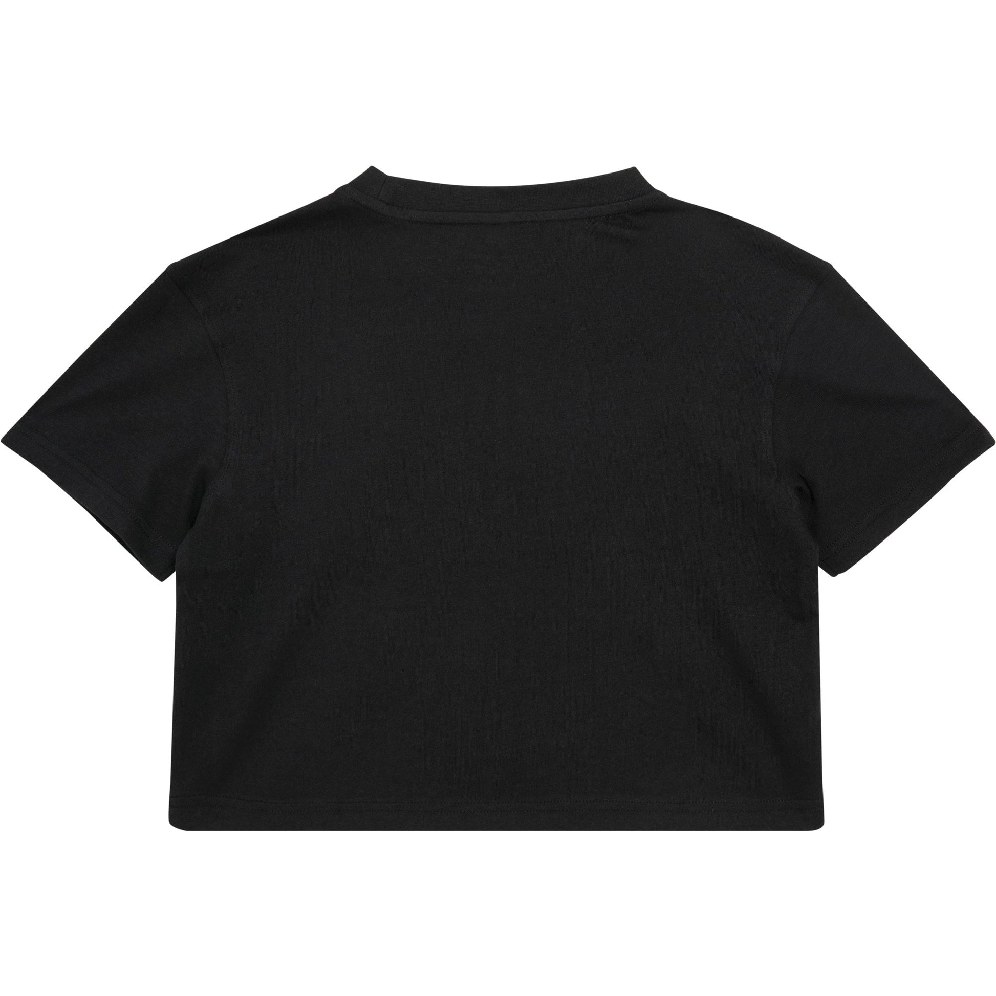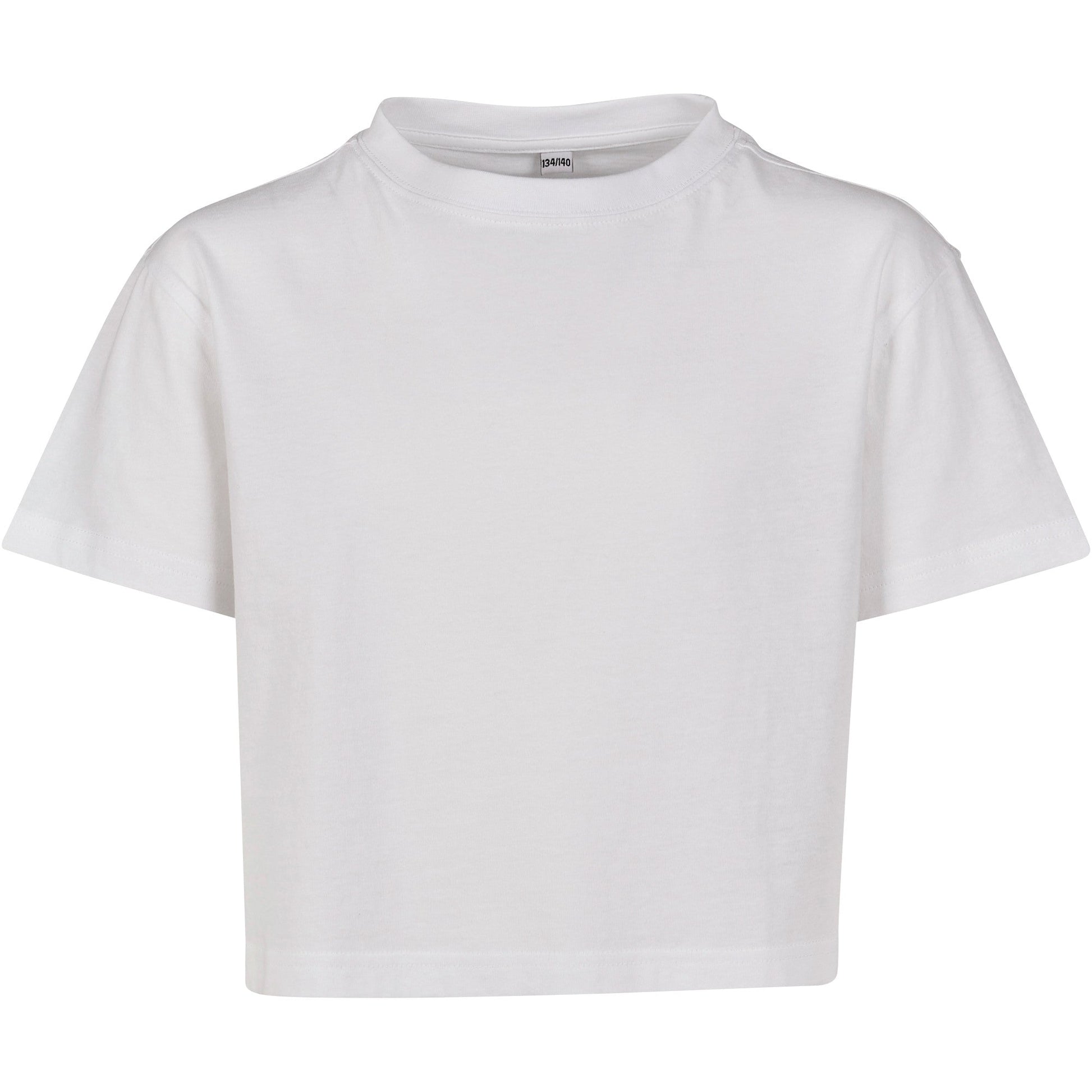 The girls cropped Jersey tee is a classic basic item with a trendy look. This shirt features a typical crew neck for a touch of nonchalance. While short sleeves make it ideal for warmer days, the shortened cut ensures that it will turn heads. The soft Jersey quality is ideal for silkscreen or flex printing.