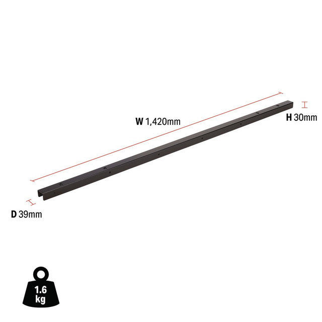 Part of the BUNKER® modular storage system. Made from premium-quality steel, this wall bracket is manufactured to the same high standards as the Draper BUNKER units. The matt black textured finish is highly durable, thanks to the industrial powder coating that protects against scratches, wear and corrosion. This single wall bracket is designed to be used as a connecting section for a wall cabinet, back panel and floor cabinet to create your ideal storage solution. The bracket measures W 1,420 x H 30 x D 39mm and is supplied with all the required fittings for simple installation. For your quality assurance, all BUNKER® units include a 10-year warranty.