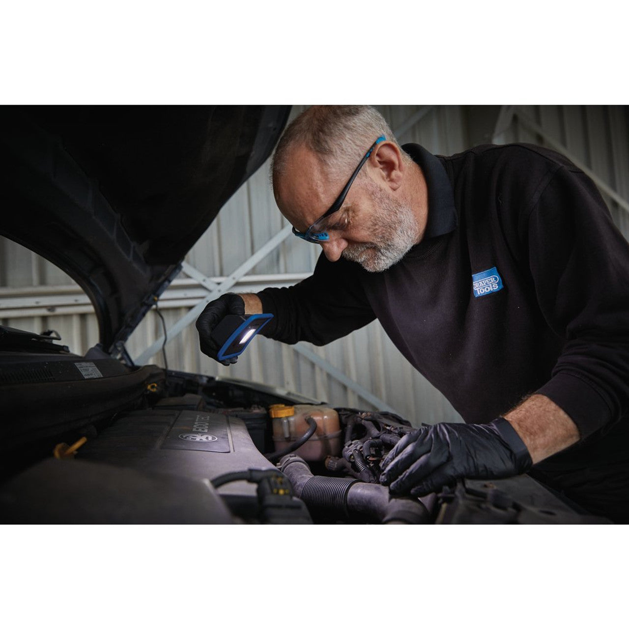 Draper Tools Cob Led Rechargeable Mini Flood Light And Power Bank With Magnetic Base And Hanging Hook, 10W, 1000 Lumens, Blue, Usb-C Cable Supplied