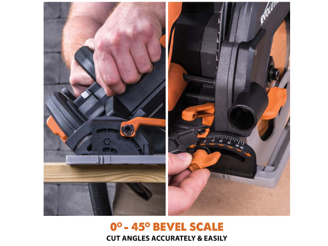 Compatible with the Evolution ST1400 and ST2800 tracks (sold separately). These saws have been developed to be compatible with most leading brands of circular saw tracks.