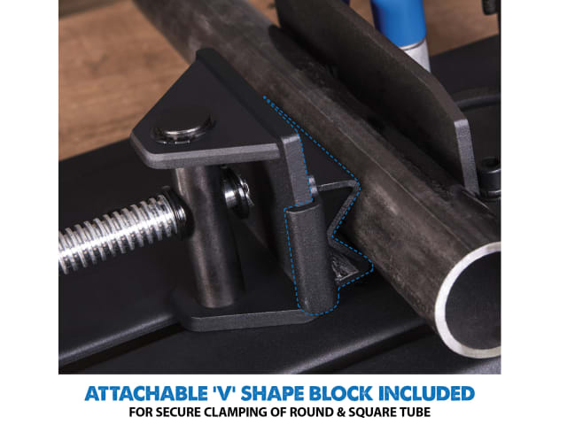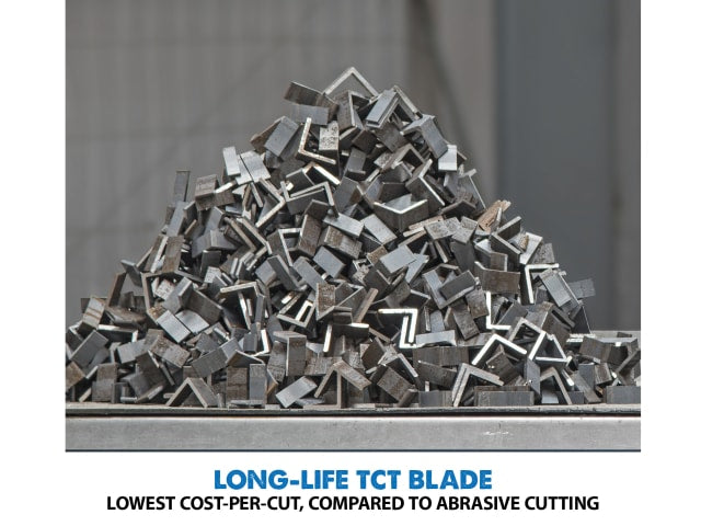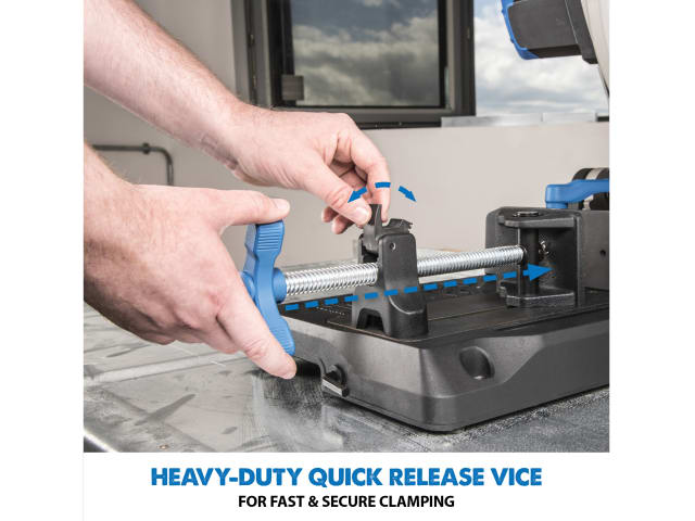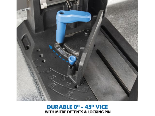 The high-speed carbide-tipped blade gives you a finished product with a straight, clean edge. Fast action swivel vice enables cuts to be made from 0-45°. A hi-torque gearbox reduces motor load and improves performance, and a pull-out collection tray makes it easy to dispose of metal chips.