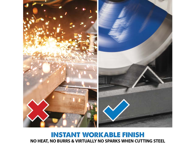 The Evolution S355CPS Industrial Chop Saw is ideal for cutting steel plate, square tube, angle iron, pipe and metal roofing. When cutting steel, it leaves an instantly workable finish, producing no heat, no burr and virtually no sparks unlike alternative methods.