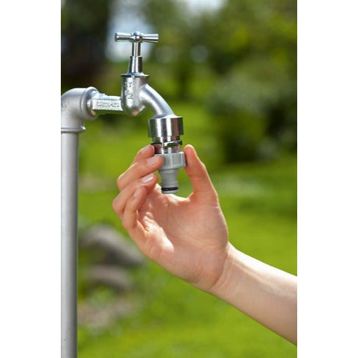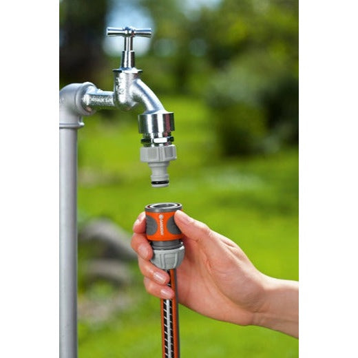 The Connector Set from GARDENA offers you versatile application possibilities in the garden or home. The complete set includes a hose connector and two tap connectors. All elements can be attached in just a few steps. You screw the tap connector onto a water tap. Then you can connect the hose connector to a garden hose. Thanks to the easy-grip handling, the hose connector and the tap connectors ensure a firm grip even with wet hands. The components of the set are part of the Original GARDENA System. This means you can attach any GARDENA connecting device to the hose. The individual components are frost-proof and UV-stable. This ensures long-lasting and reliable use. The Connector Set is a quality product, made in Germany with a five-year GARDENA manufacturer's warranty. Das Original GARDENA System.