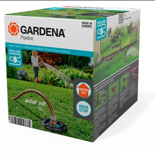 The GARDENA Water Station is the water source for your garden. Part of the GARDENA Pipeline System, it serves as an outlet and connection option where you can connect a garden hose. It is permanently installed underground and gives you convenient access to water, where you need it most in your garden. You only need to slide on the ball cover and you're ready to connect the hose. Thanks to the built-in stop valve, the water only runs when fully connected and stops automatically as soon as you disconnect the hose again. The Water Station has a built-in dirt filter, which can be easily cleaned by simply taking it out and rinsing it. The European-made Water Station is robust and reliable as it is made from high-quality materials. Water wherever it is needed. The easy access to water: pipelines below ground.