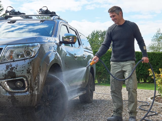 The Hozelock Tuffhoze is an advanced hybrid garden hose, combining the best of 2 hose technologies, traditional PVC and textile. Made with Tuff-Fibre, a durable woven fibre technology. It is up to 50% lighter compared to traditional hoses making it easier to manoeuvre.