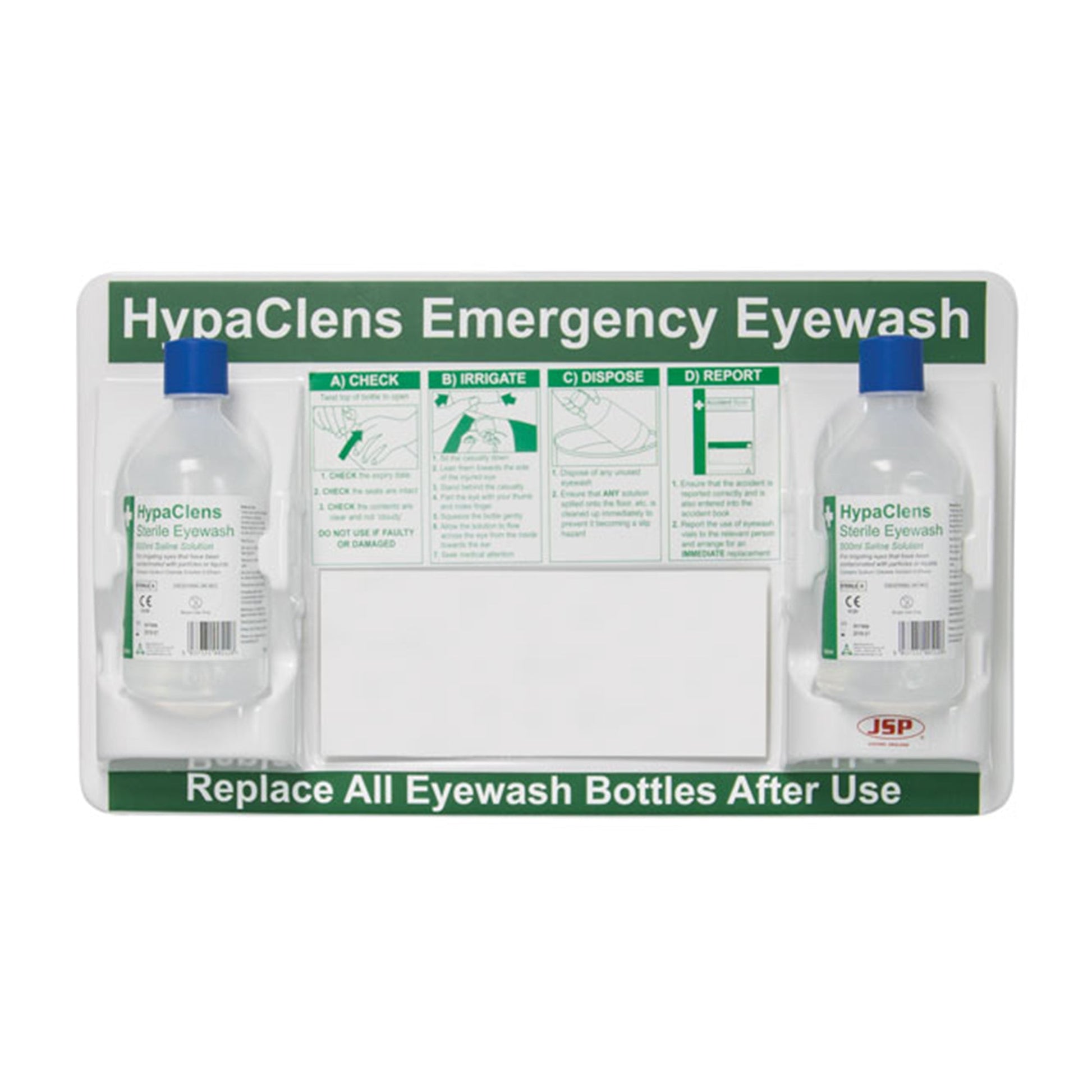 Complete with mirror and 2 500ml bottles of sterile solution of Sodium 0.9 w/v (Normal Saline)