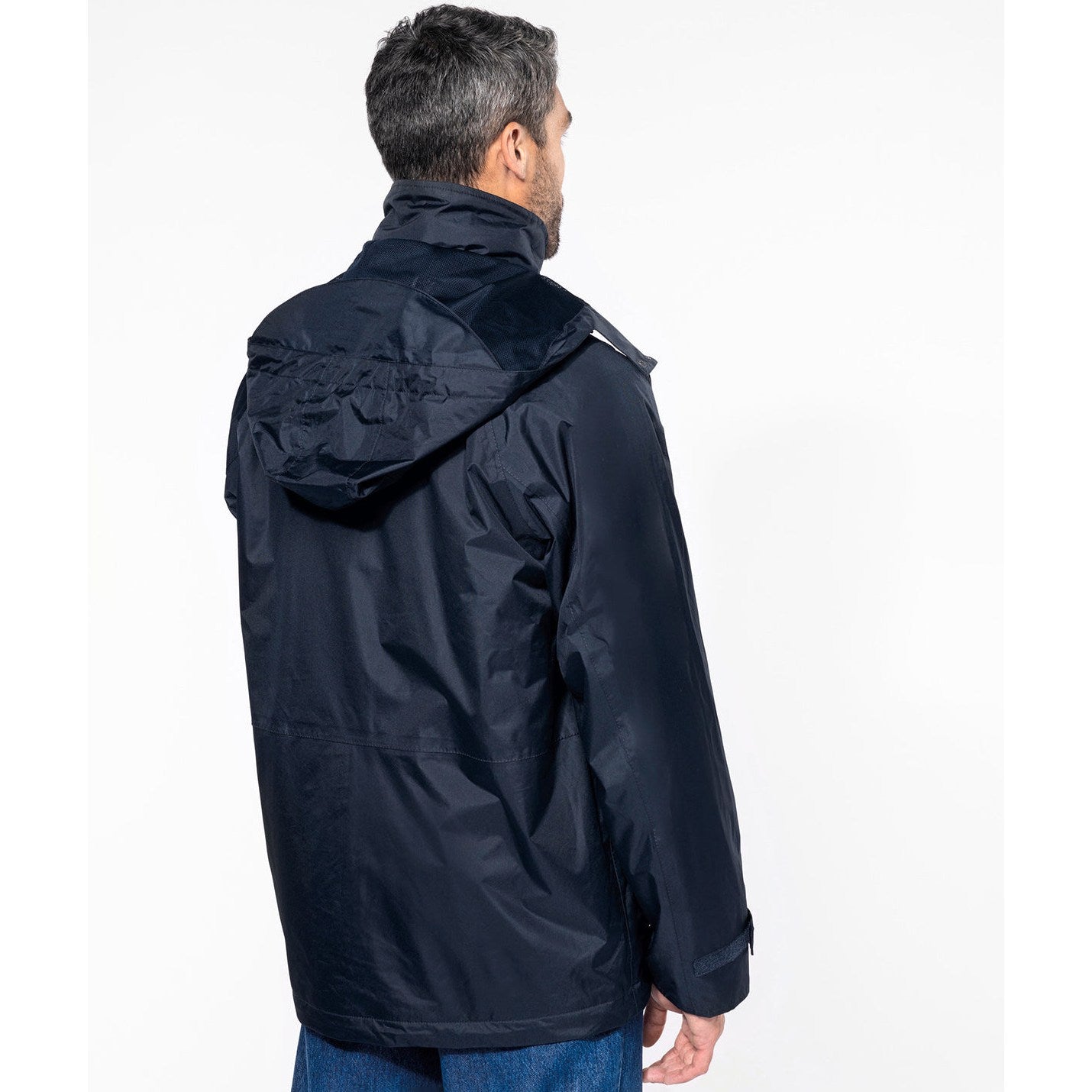 100% Polyester outer with PVC coating. Water-resistant taped seams. 3-in-1 parka: dual-composition padding. Body: 100% polyester mesh. Sleeves: 100% polyester. Zip fastening and press stud placket. Fleece-lined neck. 3-zip pockets at the front with flap. Tear release adjustable cuffs. Press stud removable hood with mesh lining and stoppers. Inner zip access for decoration. Fleece jacket: 100% microfleece polyester. 100% polyester sleeve lining for easy removal. Zip fastening. 2 side pockets. Fleece jacket detachable by zip. BSCI certified.