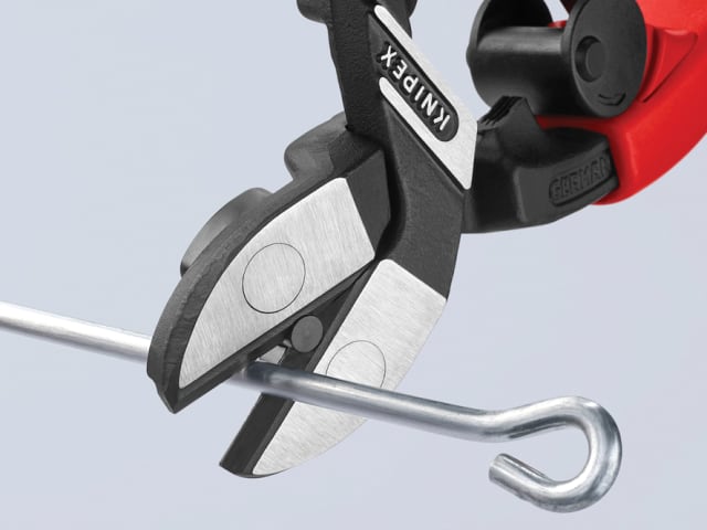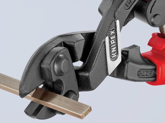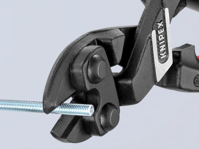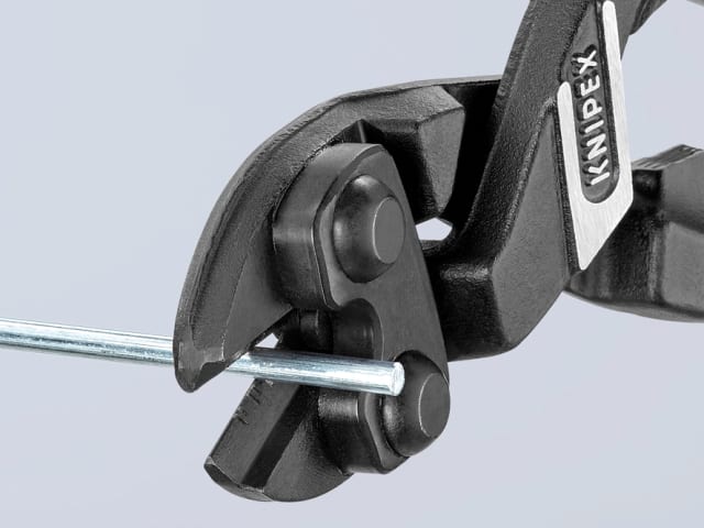 The Knipex 71 Series CoBolt® Compact Bolt Cutters with 2 component, soft grip handles. Fitted with a return spring, these cutters have an exceptional cutting performance with minimum effort because of a very effective lever action design. The lever action guarantees an extremely favourable lever ratio with low friction, and cutting performance is 30 times higher than manual force due to special joint design.