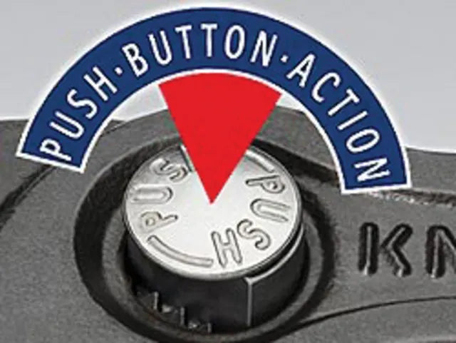 The Knipex 87 01 Cobra® Series Water Pump Pliers are made from chrome vanadium electric steel, which has been forged and multi-stage oil-hardened for excellent durability. The gripping surfaces have special hardened teeth, with hardness approx. 61 HRC to ensure high wear resistance and stable gripping. A press-button action allows fast and firm adjustment directly on the workpiece.