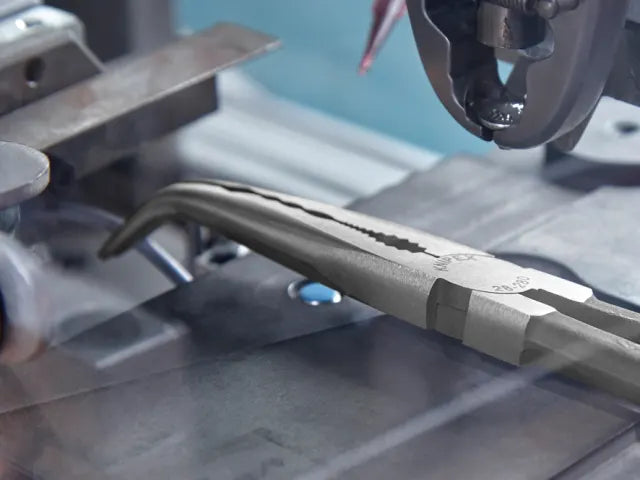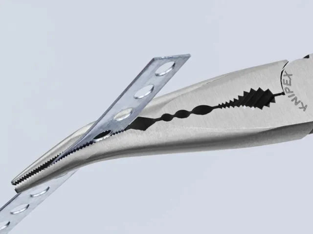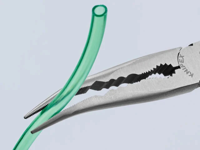 The Knipex Bent Long Reach Needle Nose Pliers are forged from special tool steel that has been oil-hardened and tempered. They are ideal for gripping, adjustment and assembly work in hard to reach areas thanks to slim half round tips and long handles.
