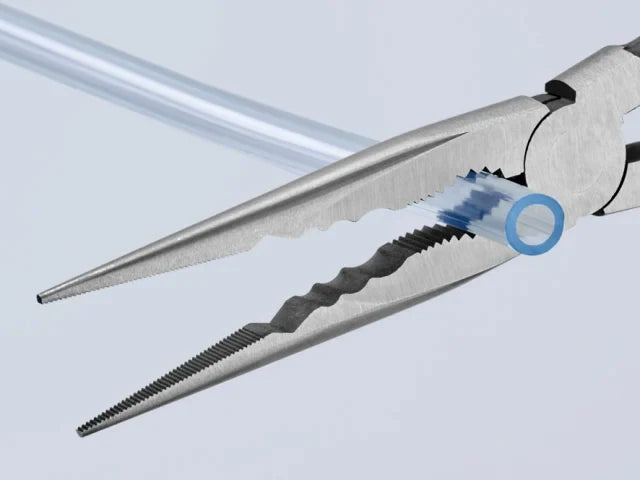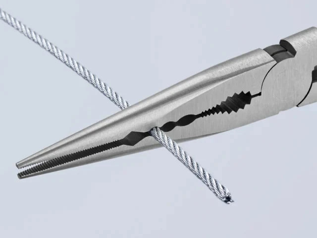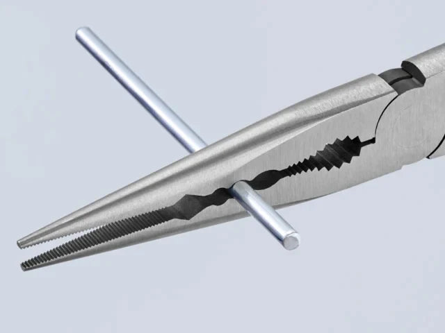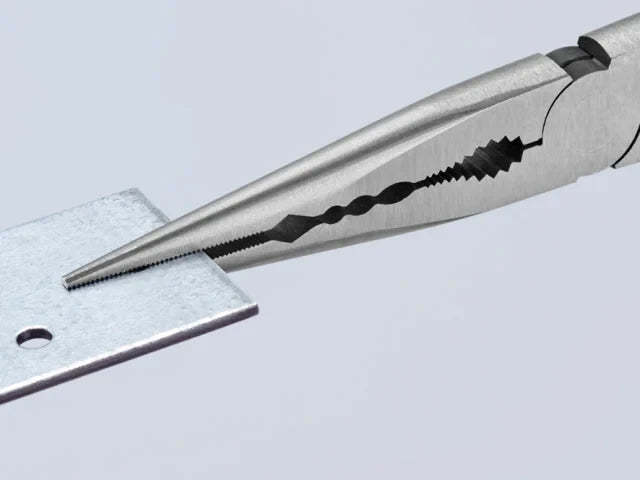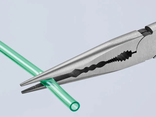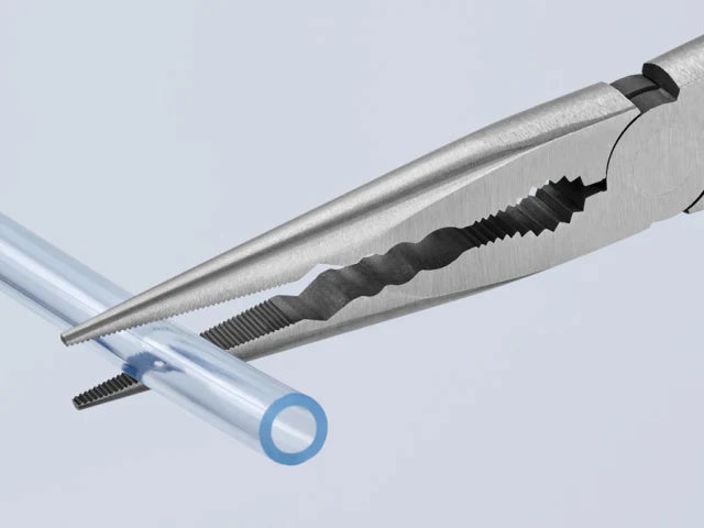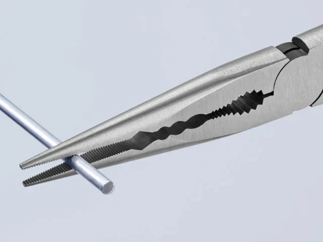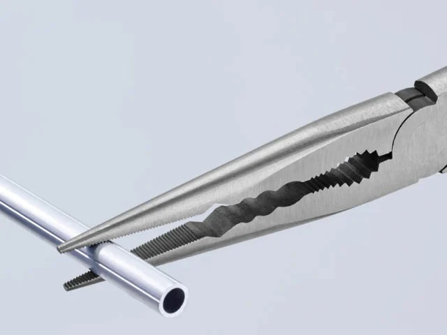 The Knipex Straight Long Reach Needle Nose Pliers are forged from special tool steel that has been oil-hardened and tempered. They are ideal for gripping, adjustment and assembly work in hard to reach areas thanks to slim half round tips and long handles.