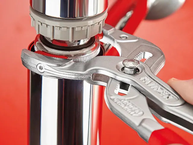 The Knipex 81 Series Plastic Pipe Grip Pliers have exchangeable plastic jaws for sensitive surfaces and are great for siphons, tube fittings and connectors. The fine adjustment is ideal for adjustment to diverse diameters. They have 25 adjustment positions and a box-joint design with an ergonomic handle geometry.