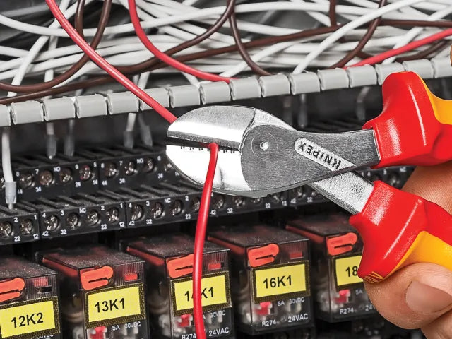 The Knipex 73-06 Series X-Cut Diagonal Cutters are fitted with multi-component grips, VDE tested up to 10,000V and safe for work up to 1,000V. They conform to DIN EN / IEC 60900. This box joint diagonal cutter is compact, light and simultaneously powerful and highly precise. With its wide range of cutting abilities, it offers versatility in industry, trades and crafts.