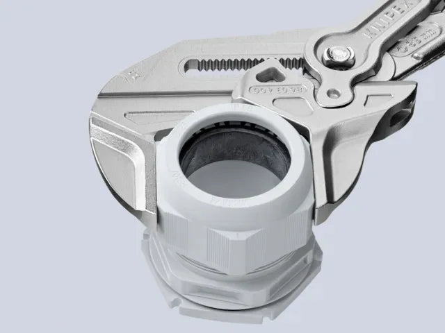 Open-end wrenches with fixed opening widths are expensive, especially when used for large union joints. The KNIPEX Pliers Wrench XL, with its adjustable jaw offers enormous savings potential.