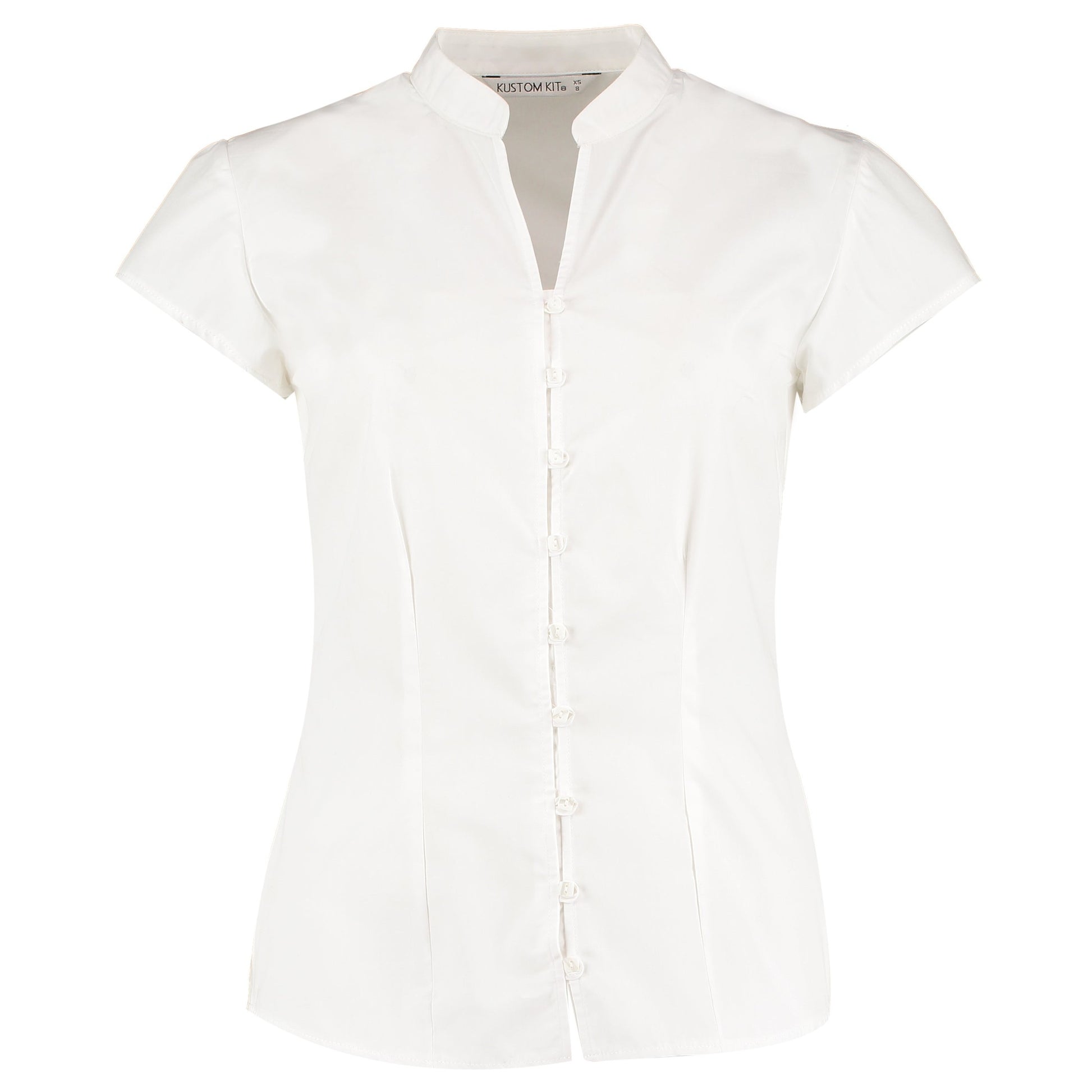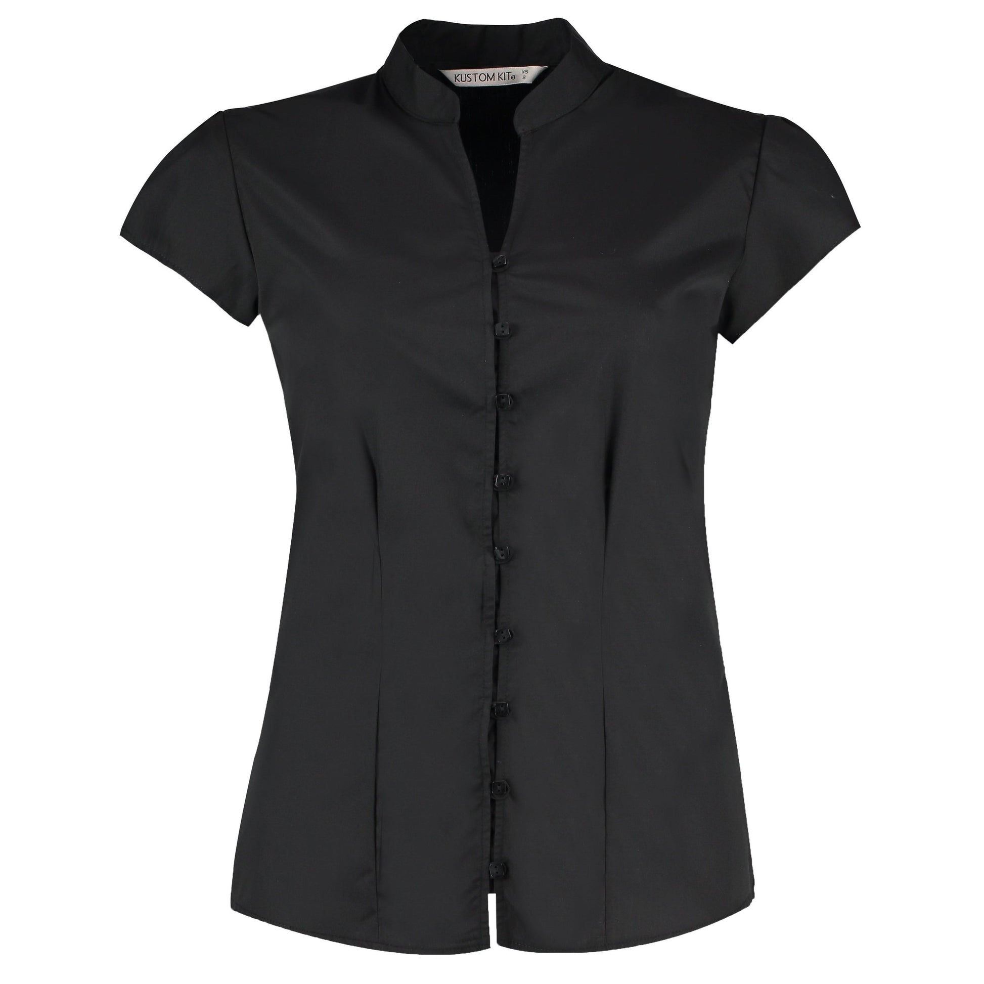 Kustom Kit Women's Continental Blouse Mandarin Collar Cap Sleeve (Tailored Fit)