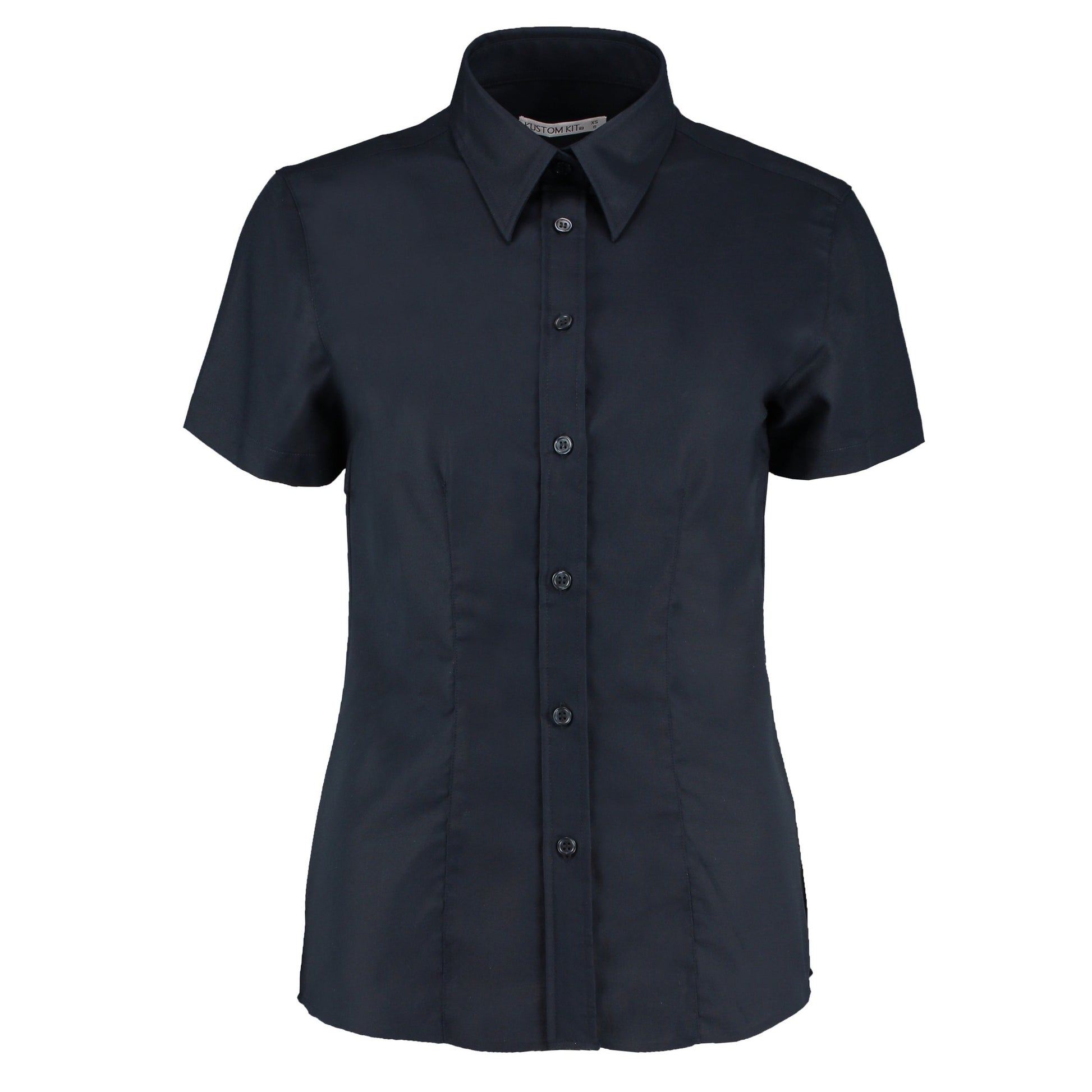 Soft interlined fused collar. Rounded hem. Single stitching around armholes. Double-stitched sleeve and side seams. Two front darts. Two back darts. Spare button. Kustom Kit® woven back neck label. SEDEX certified. Oeko-Tex certified.