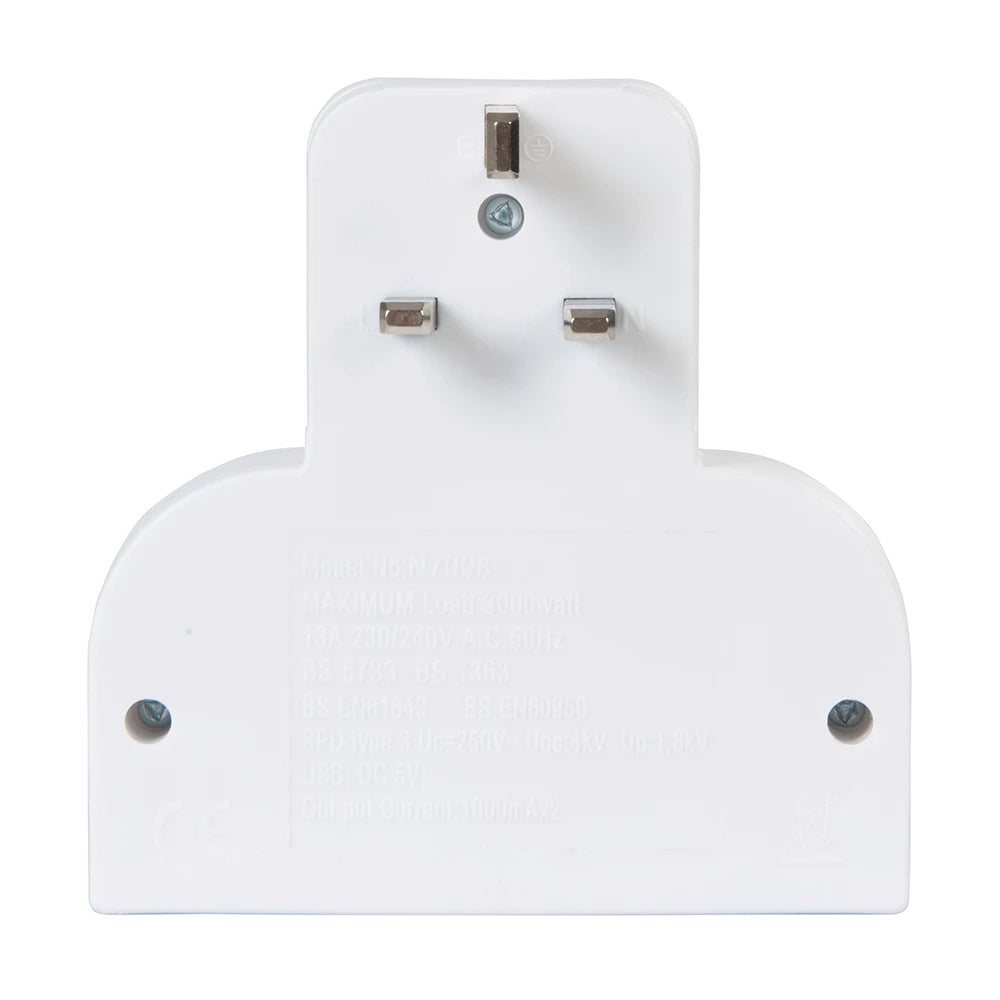 - Allows simultaneous use of 13A sockets while charging 2 x USB