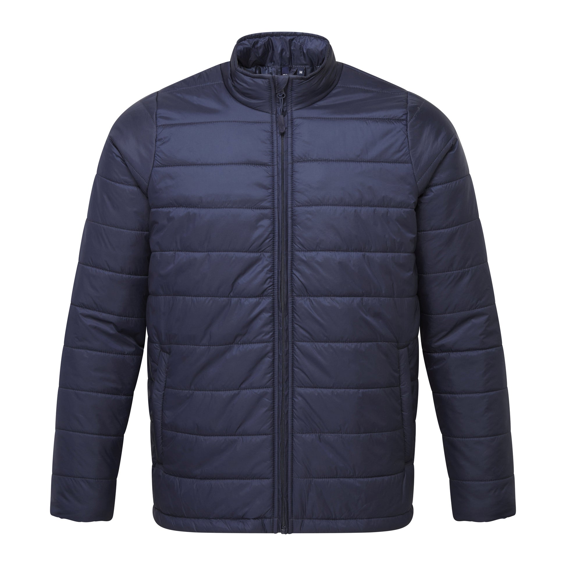 Mens padded zip-through jacket with horizontal stitching to form baffles, ensuring an even distribution of insulation. Covered zip with chin guard and zip guard to the inner. Styled with a cadet collar. Two welt jet zipped side pockets with a single open pocket to the inner for handy storage. Elasticated cuffs measuring one inch wide. Full embroidery access to the entire jacket through an internal zip in the lining. Lightweight and folds downs easily into its own stuff sack. Certified amfori BSCI.