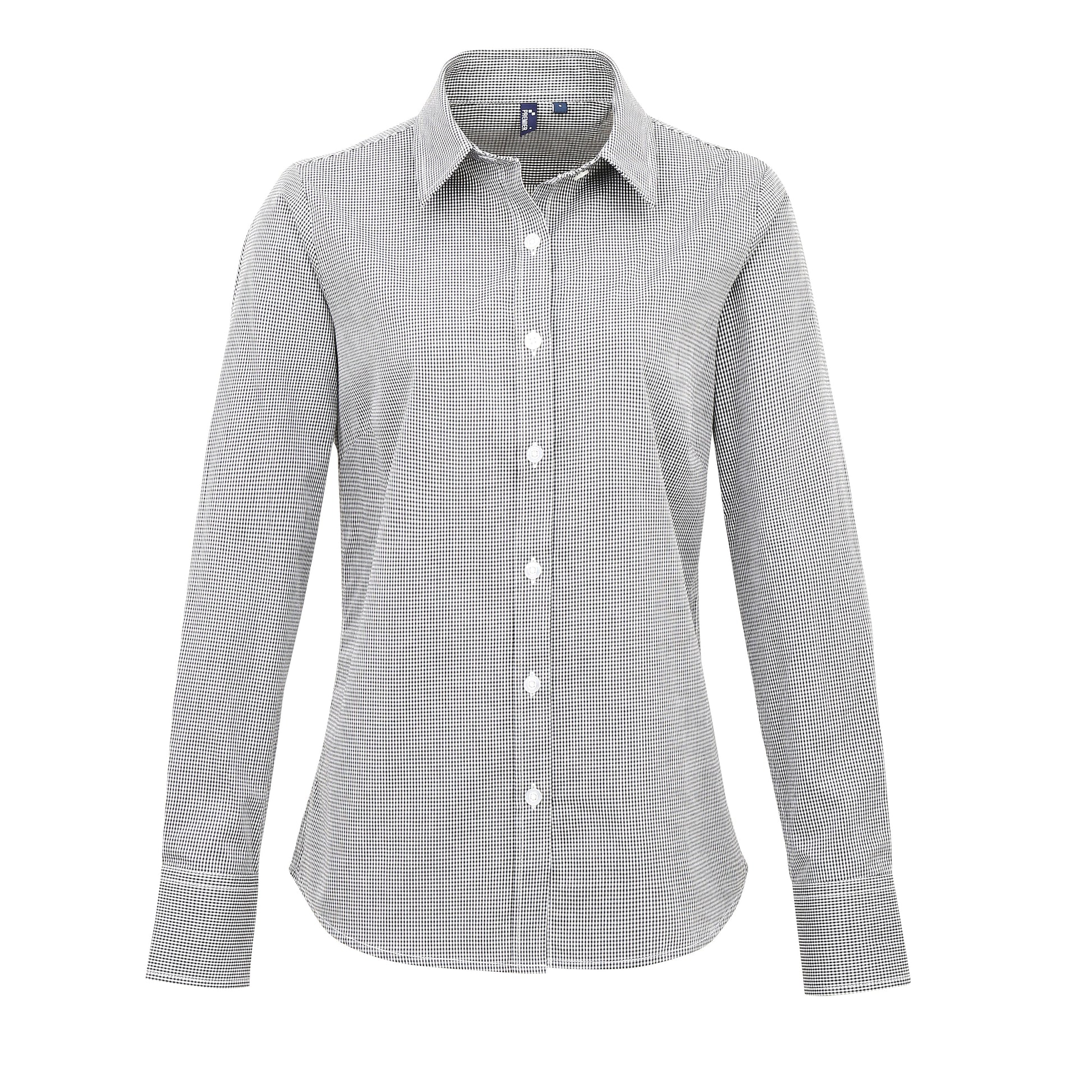 Premier Women's Microcheck (Gingham) Long Sleeve Cotton Shirt