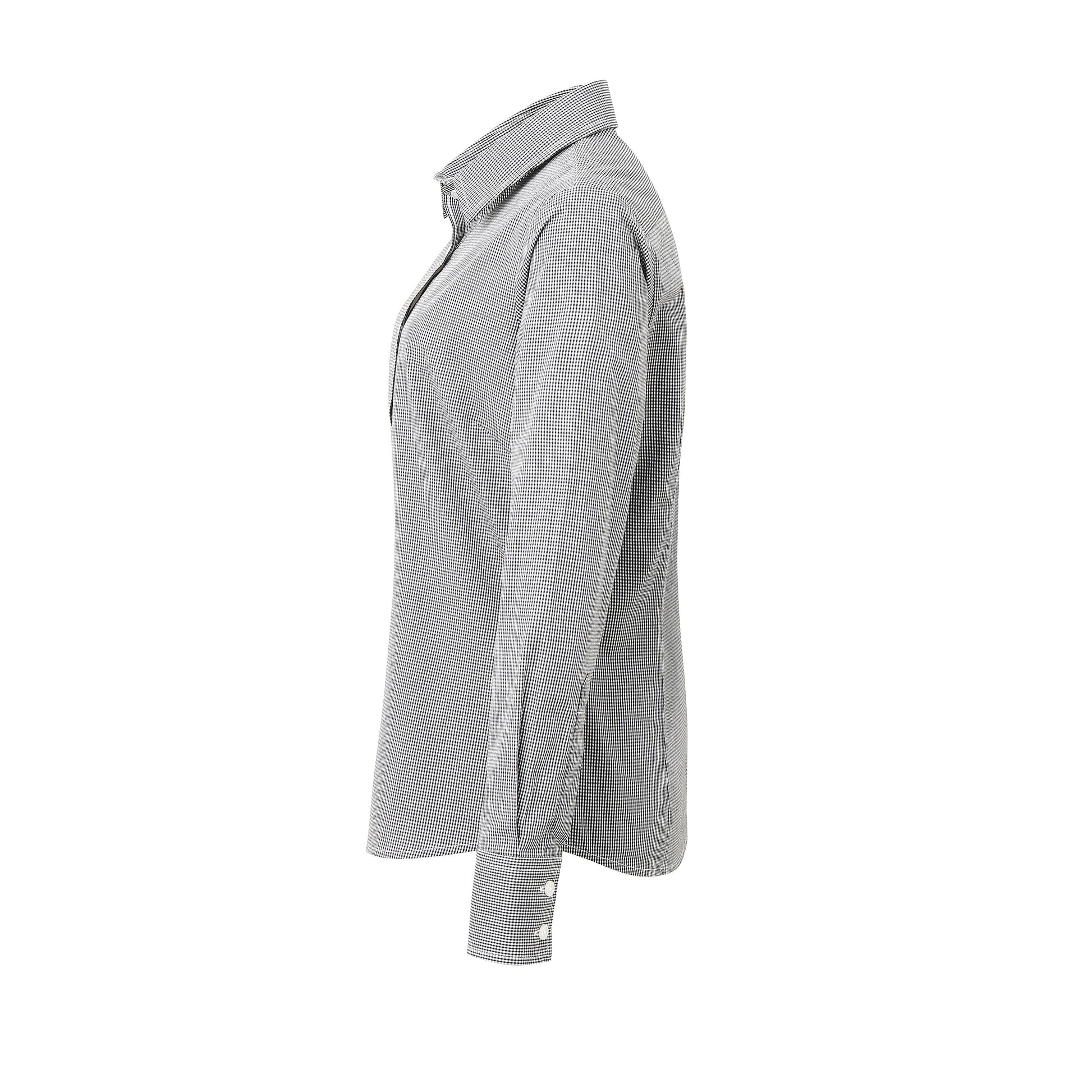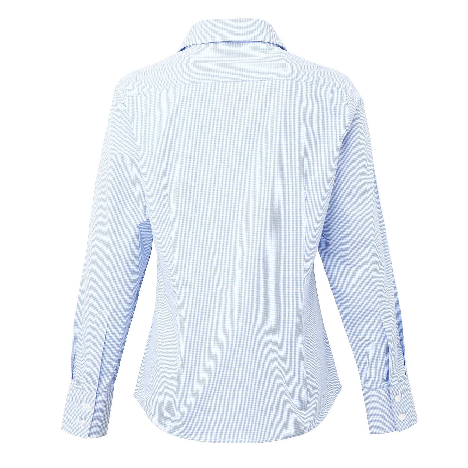 Long sleeve fitted shirt with soft collar styling. Double buttoned cuffs. Gingham pattern. Bust and back darts. Back yoke. WRAP certified. BSCI certified. Reach certified. SEDEX certified.