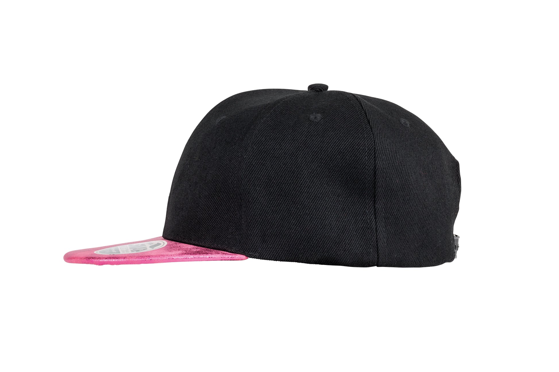 Tear away label. CORE value product. 6 panel. Stitched eyelets. Stiffened front panels. Snapback adjuster. Contrast PU pearl fabric flat peak.