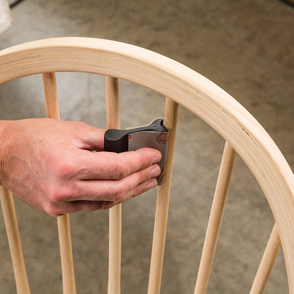 Double-ended contour sanding blocks for easy sanding of concave and convex shapes without distorting or diminishing profile. Ends are connected by a narrow flexible section for comfortable grip. Made from flexible rubber that adapts to minor variations in diameter. Grippy texture prevents sandpaper from slipping and hand fatigue. Set includes six blocks with inside/outside diameters of 6, 10, 13, 16, 19 and 22mm (1/4, 3/8, 1/2, 5/8, 3/4 and 7/8"). Diameters are moulded into the rubber for easy selection.