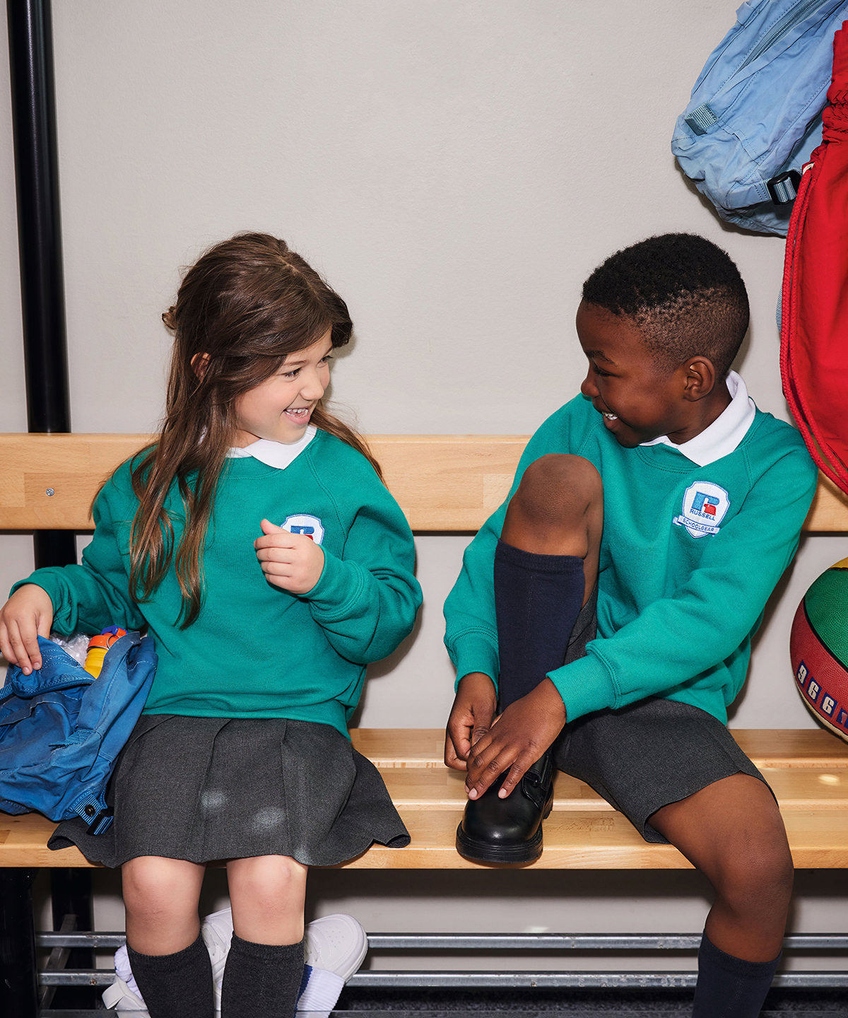 Iconic school sweatshirt. Twin needle coverseams on neck. Raglan sleeve cuffs and waistband for extra durability. Herringbone back neck tape. Spotshield stain resistant coating for fabric protection. Fade resistant. WRAP certified.