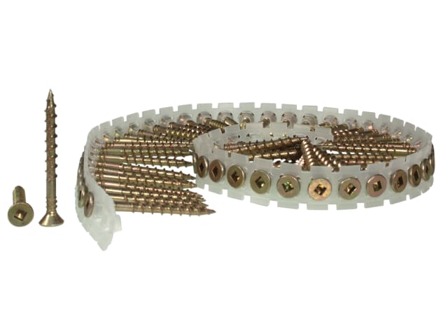 Senco DuraSpin® Collated Flooring & Wood screws. Yellow zinc finish, coarse thread. 50 screws per strip.