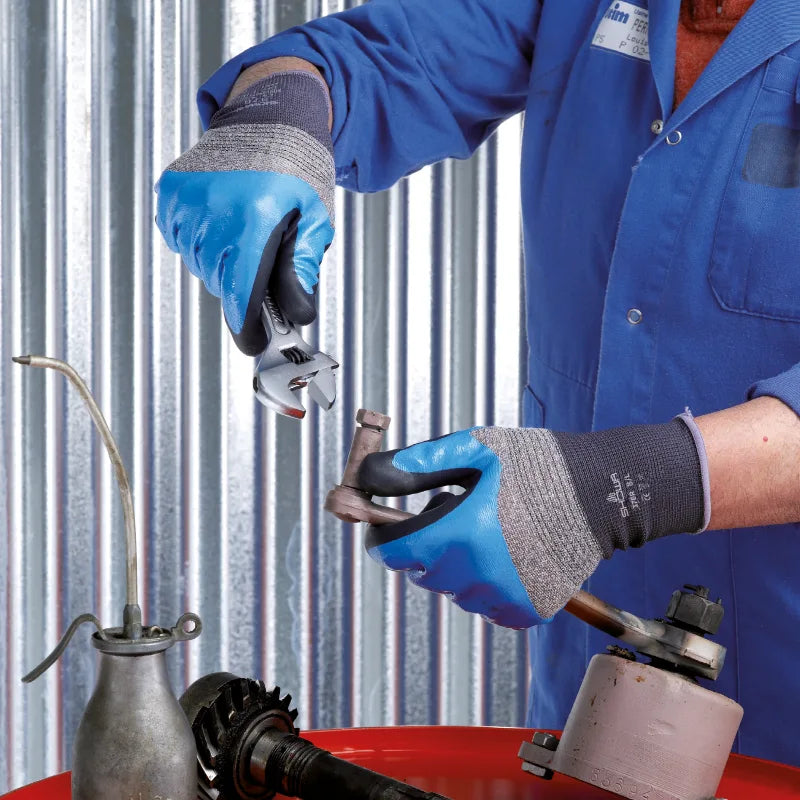 A flexible & robust glove with a double-dipped nitrile coating that extends across the knuckles to provide enhanced resistance to liquids. The additional coating of nitrile on the palm allows greasy, wet & oily surfaces to be gripped with confidence.