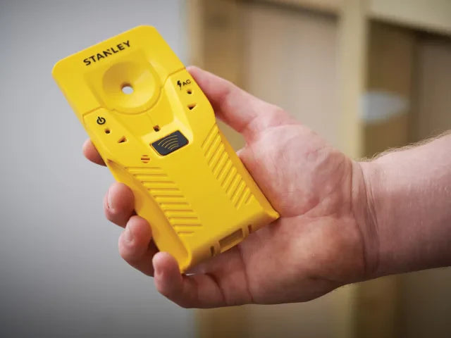 The Stanley S110 Stud Sensor detects wood and metal studs up to 19mm in depth. It also detects the presence of AC live wire within a 15-45cm radius and up to 50mm depth. Single button for simple operation. An audible alert provides clear notification of stud detection whilst directional LED lights provide visual guidance to stud location.