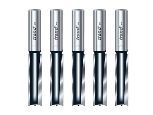 Trend Trade range two flute router cutters have extra long shanks and are designed to meet the demanding needs of the professional trademen. They have a 2mm micrograin Tungsten Carbide tips for cutting the most abrasive materials to give extra long life.