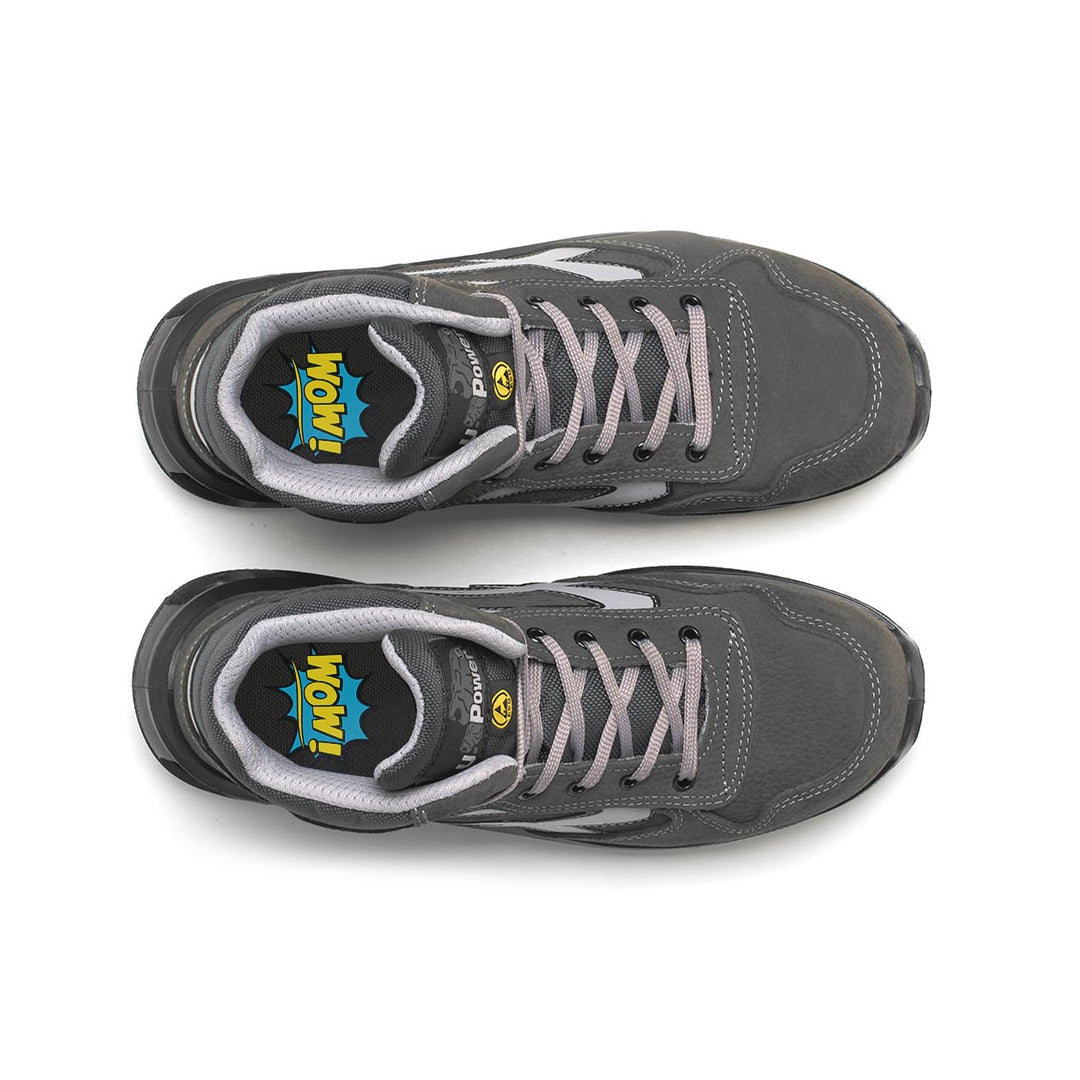 Safety shoes high, light and comfortable u power of the Red Lion line, with upper in natural nubuck leather, aluminium toecap, ultra-breathable, water-repellent, anti-puncture, anti-slip and PU / PU infinergy, S3 SRC CI ESD sole.