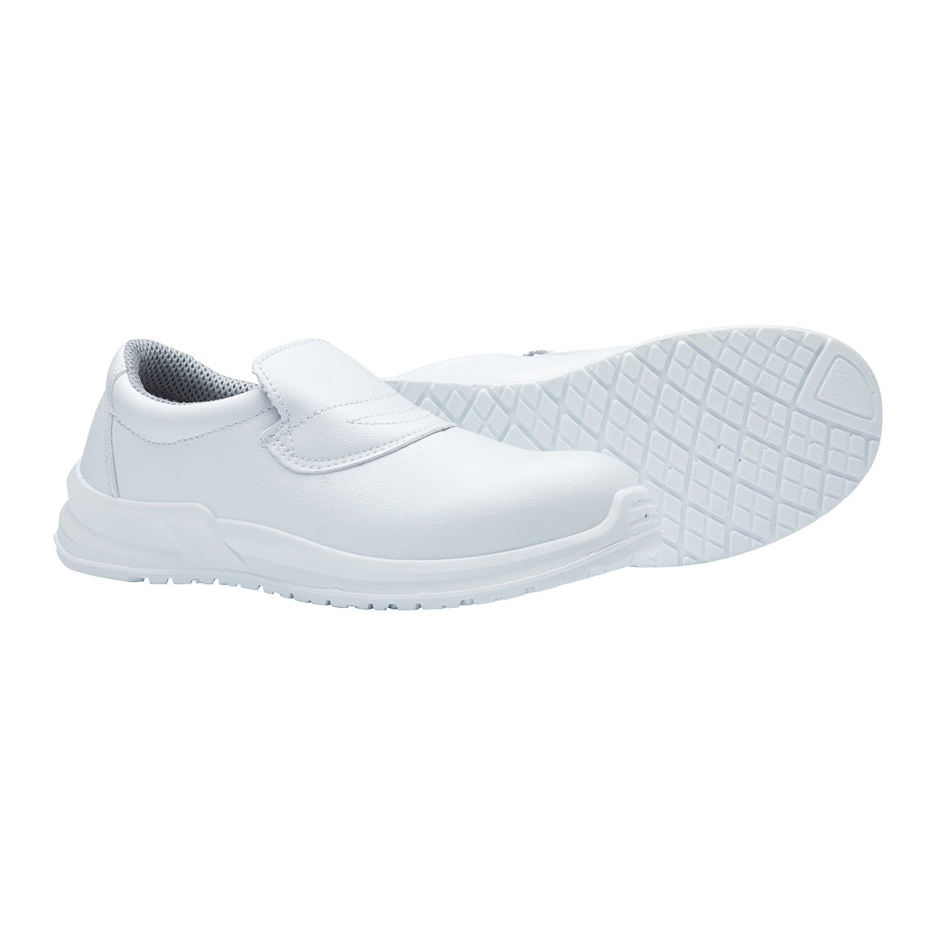 Ideal for indoor cleanroom environments such as food preparation, medical, and pharmaceutical settings where there is a risk of slipping on wet or dry tiled surfaces, the Slip-On Shoe features a steel-toe cap and a water-resistant microfibre upper that can be machine-washed at 40°C. The lightweight, anti-slip PU sole is self-cleaning, anti-static, and resistant to oils, acids, and fuel oil, offering reliable protection and hygiene in controlled environments.